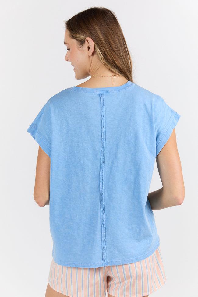 Details Washed Knit Pocket Tee Blue Fabric has stretch Crew neckline, short sleeves, functional pocket, bottom split hem Unlined Size small from shoulder to hem: 21" Material and Care 100% cotton Hand wash cold, dry flat Patterns may vary Materials may have natural variations Colors may vary from different viewing devices.