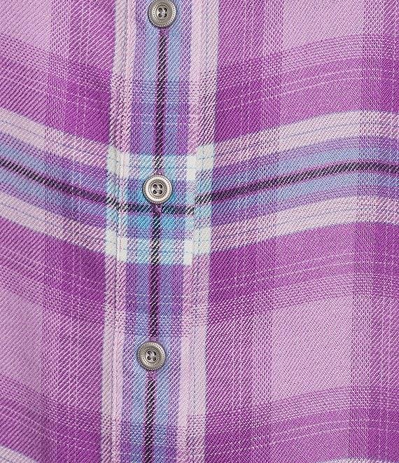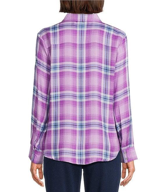 Allison Daley Ombre Plaid Long Sleeve Point Collar Button Front Shirt
