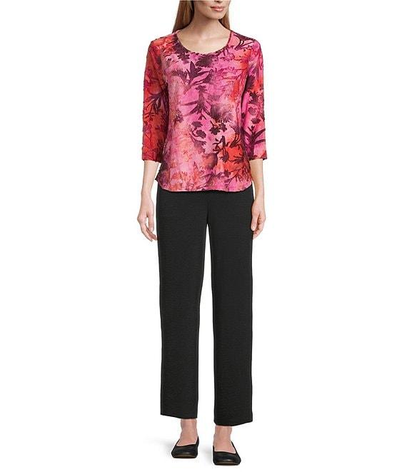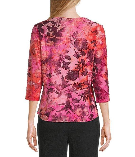 Allison Daley Petite Tie-Dye Jacquard 3/4 Sleeve Crew Neck Knit Top
