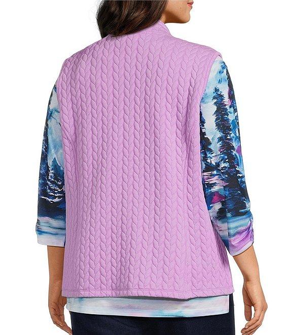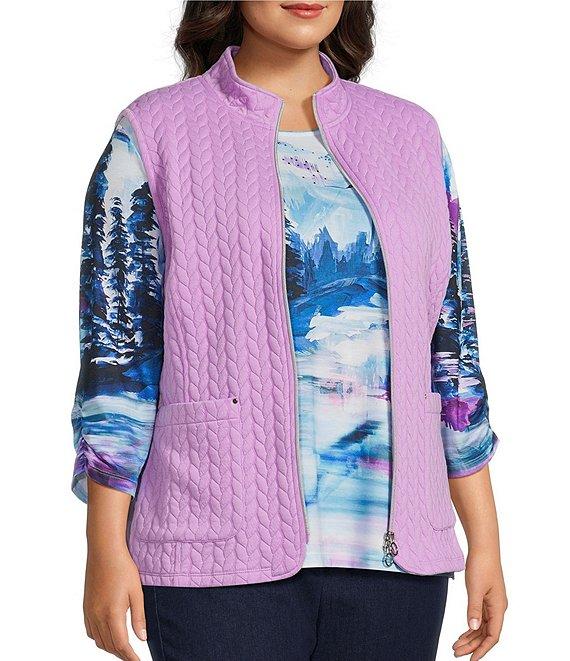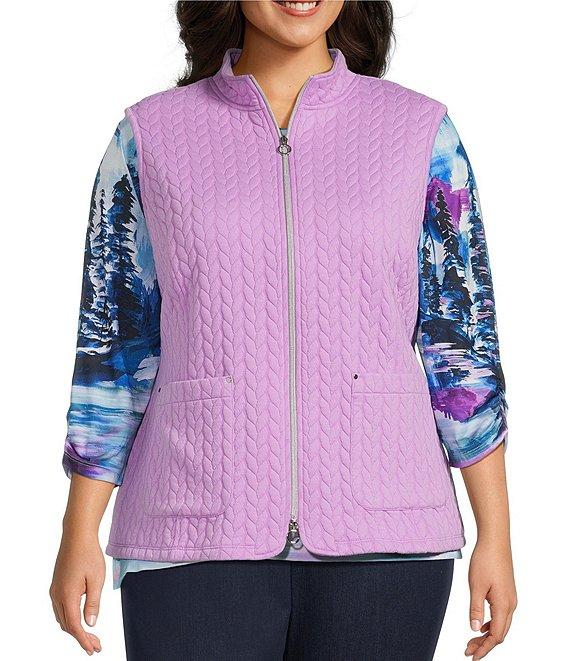 Allison Daley Plus Lilac Sleeveless Zip Up Knit Quilted Vest