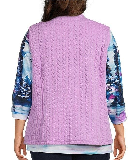 From Allison Daley Plus, this vest features: Cable knit quilt fabrication Stand collar Sleeveless Full zipper closure with ring detail Approx. 26" length from high point shoulder Polyester/spandex Machine wash/tumble dry Imported.