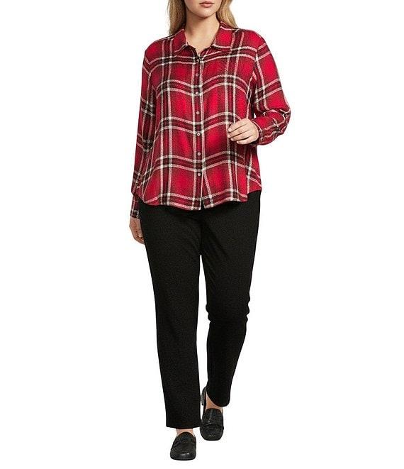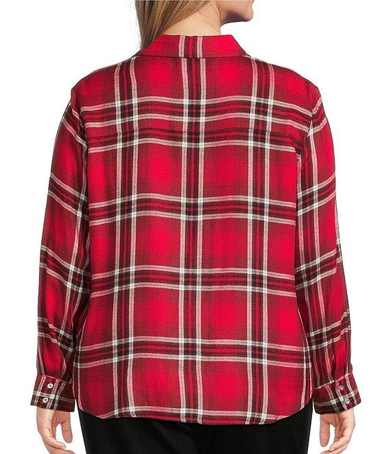 Allison Daley Plus Size Tango Red Ombre Plaid Long Sleeve Point Collar Button Front Shirt