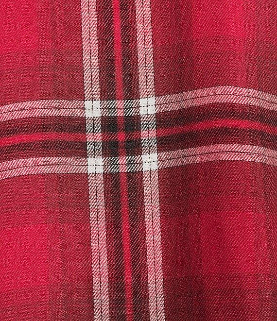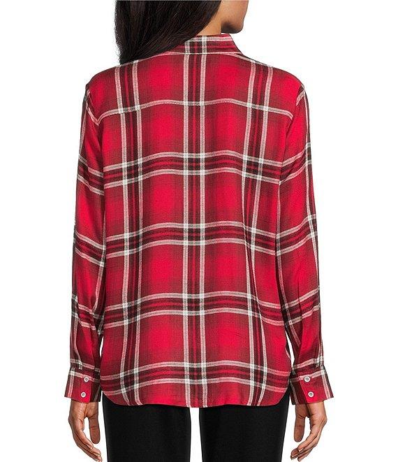 Allison Daley Tango Red Ombre Plaid Long Sleeve Point Collar Button Front Shirt