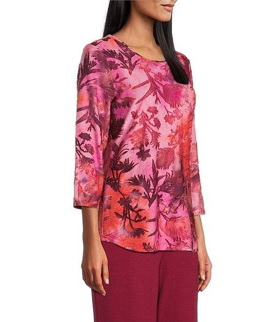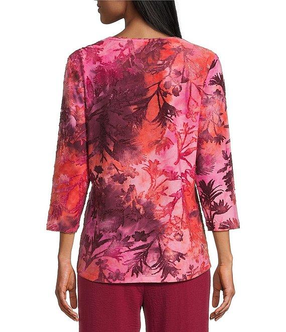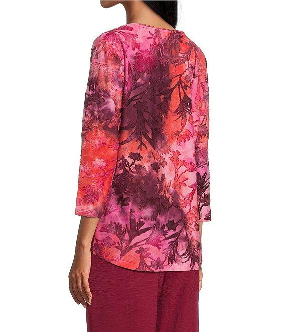 Allison Daley Tie-Dye Jacquard 3/4 Sleeve Crew Neck Knit Top