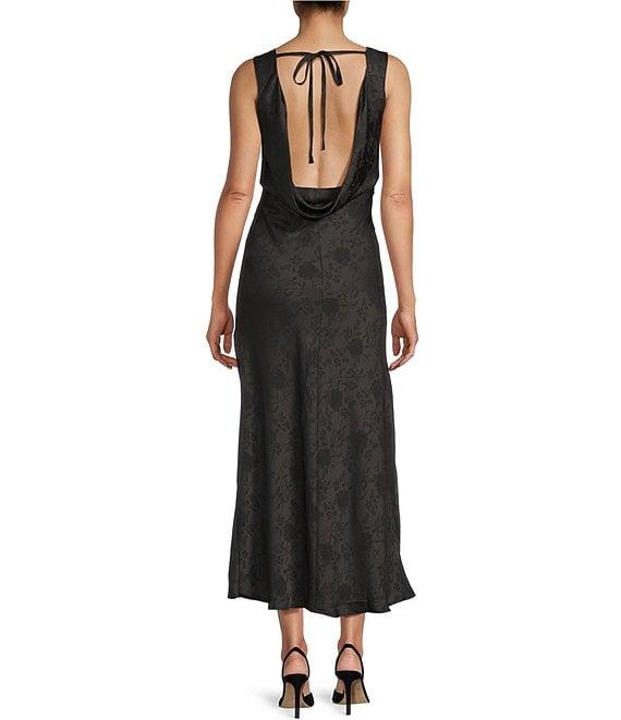 Allison & Kelly Floral Printed Jacquard V-Neck Drape Back Ballgown