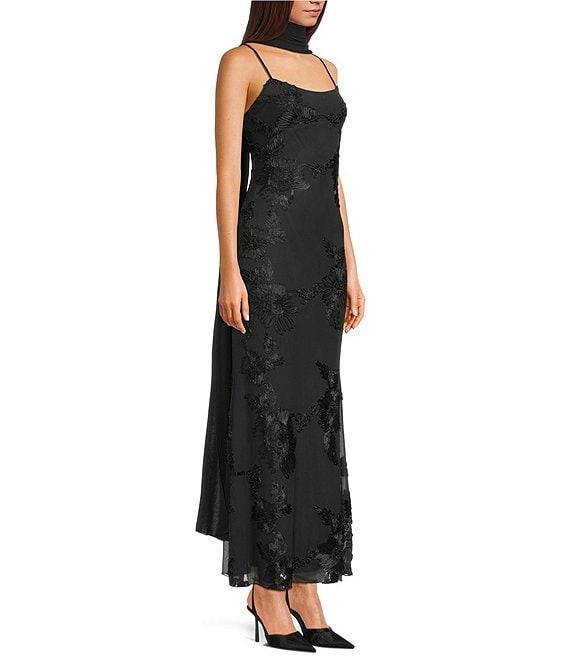 Allison & Kelly Power Mesh Floral Design Scoop Neck Scarf Maxi Dress