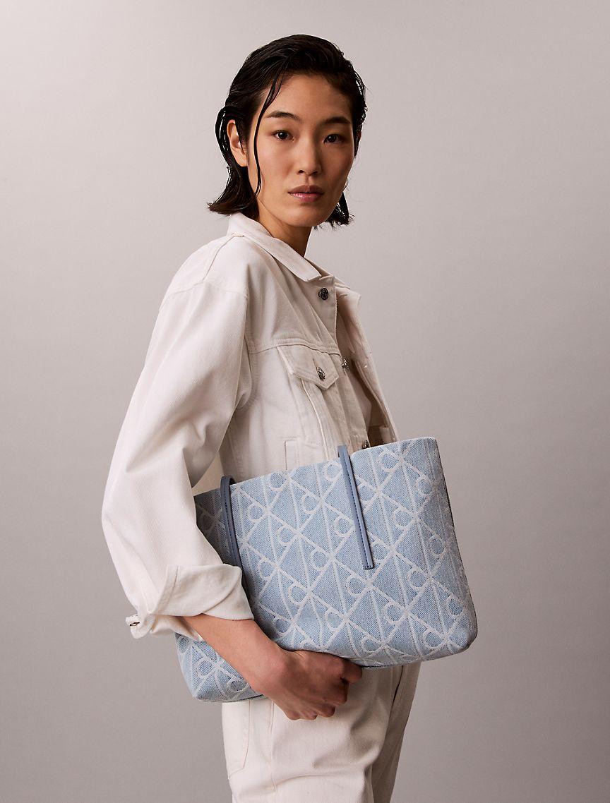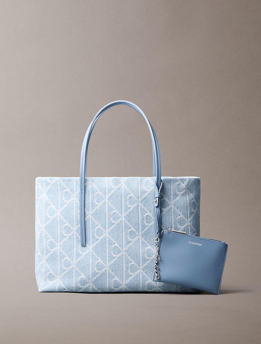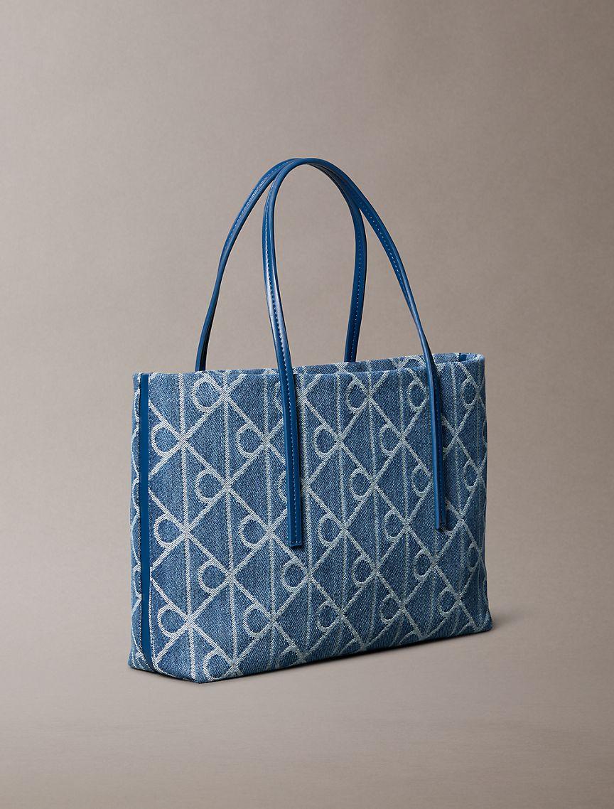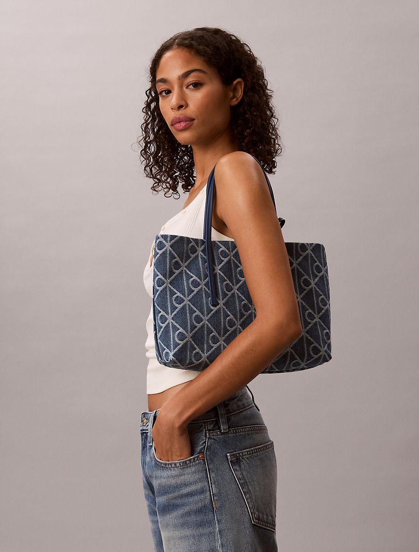 Allover Emblem Logo Denim Small Tote Bag