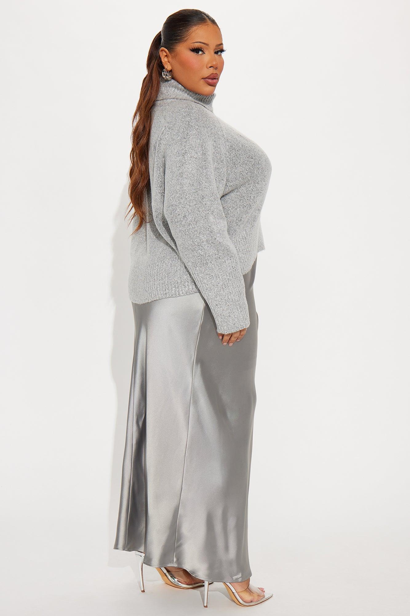 Always Near Satin Sweater Maxi Dress Set - Heather Grey Female