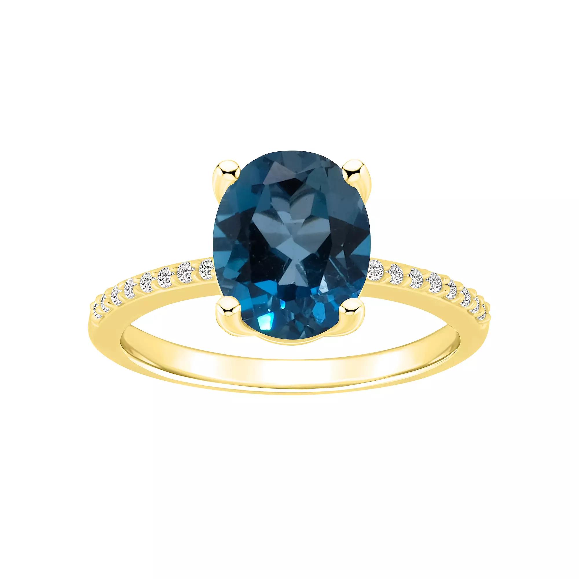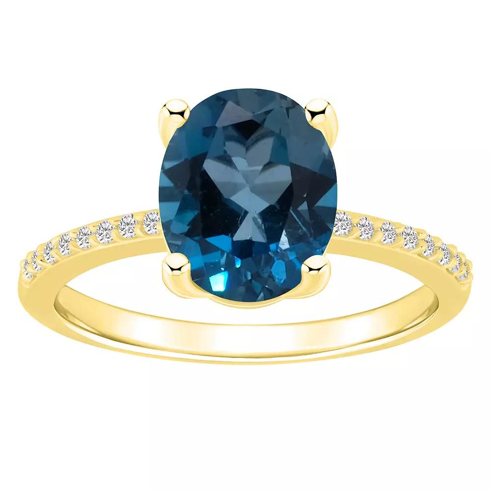 With shimmering London blue topaz and genuine diamonds, this 14k gold Alyson Layne ring is an accessory you'll love. With shimmering London blue topaz and genuine diamonds, this 14k gold Alyson Layne ring is an accessory you'll love. Nickel free Metal: 14k gold Packaging: boxed Width: 0.31 in. Finish: polishedSTONE DETAILS Stone type: London blue topaz Total weight: 3 3/4 ct. Stone size: 10 mm x 8 mm Shape: oval Setting: prongDIAMOND DETAILS Total weight: 1/10 ct. Color grade: I-J Clarity: 12 Shape: round brilliant Setting: prong Diamond weights are approximate. Diamond Total Weights may vary between .01 and .13 ct. Some diamonds consist of fewer than 17 facets. Gemstones may have been treated to enhance their appearance. Special care may be required. Please visit our Gemstone Treatment & Special Care Guide for more information. Image(s) may be enlarged to show detail. Please note, due to the high value of this item, a signature may be required upon delivery. Gender: female. Age Group: adult.