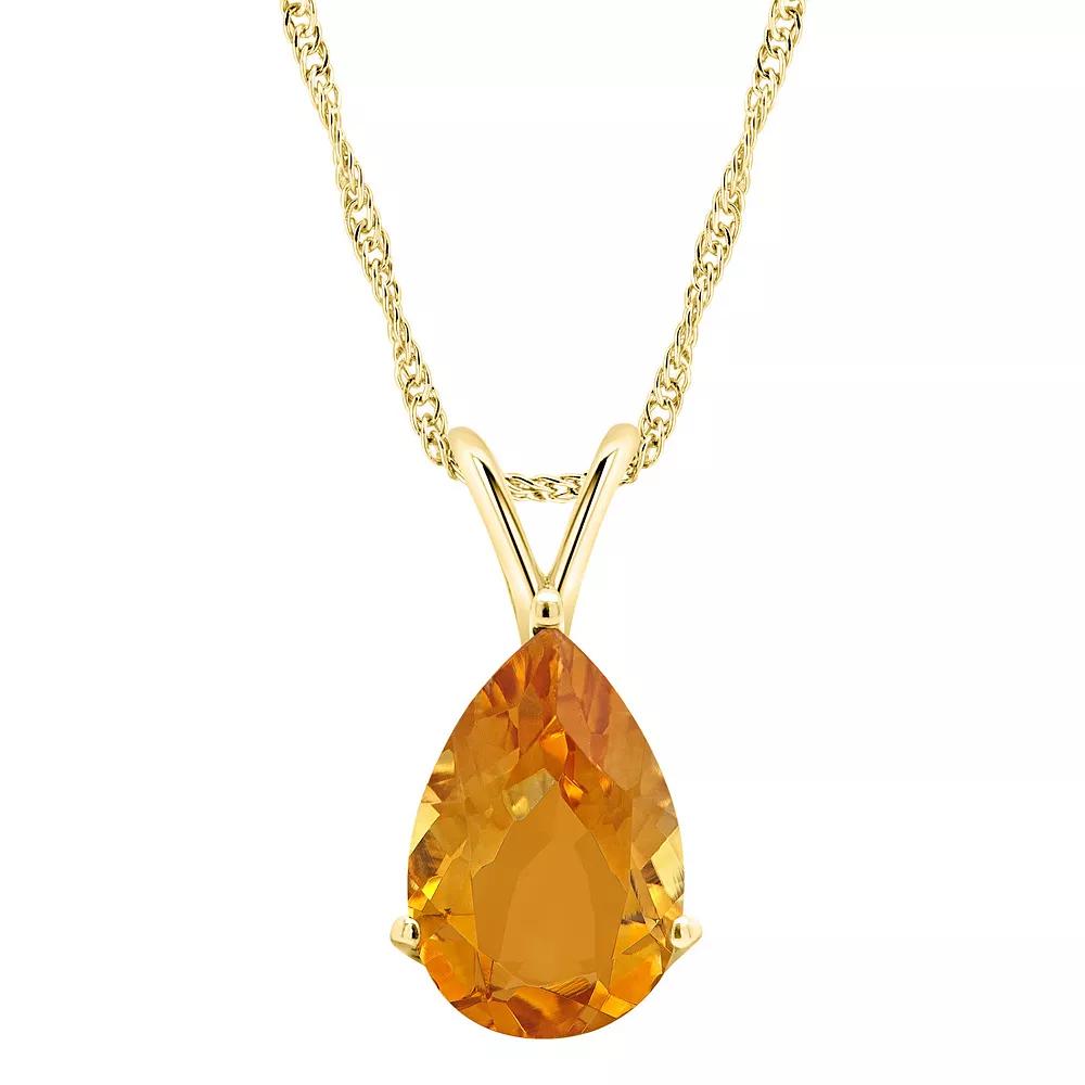 Adorned with elegant pear-cut citrine, this 14k gold pendant necklace from Alyson Layne makes a lovely accessory you'll treasure. Adorned with elegant pear-cut citrine, this 14k gold pendant necklace from Alyson Layne makes a lovely accessory you'll treasure. Clasp: lobster-claw Nickel free Necklace length: 18 in. Packaging: boxed Finish: polished Pendant size: 0.75 in. x 0.25 in. Chain type: ropeSTONE DETAILS Stone type: citrine Total weight: 2 3/4 ct. Stone size: 12 mm x 8 mm Shape: pear Setting: prong Gemstones may have been treated to enhance their appearance. Special care may be required. Please visit our Gemstone Treatment & Special Care Guide for more information. Size: 18". Color: Orange. Gender: female. Age Group: adult.