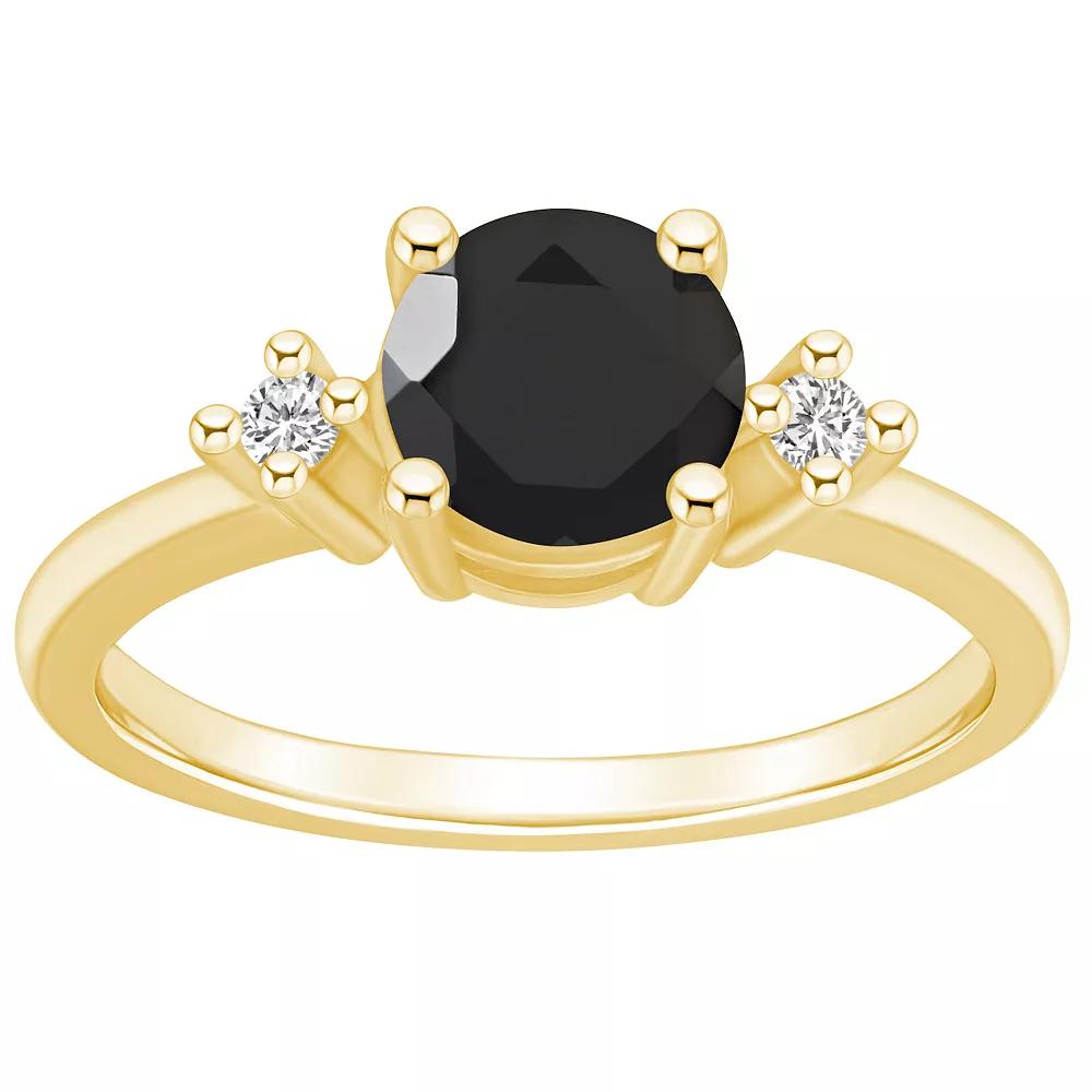 With shimmering black onyx and genuine diamond accents, this 14k gold Alyson Layne ring is an accessory you'll love. With shimmering black onyx and genuine diamond accents, this 14k gold Alyson Layne ring is an accessory you'll love. Nickel free Metal: 14k gold Packaging: boxed Width: 0.56 in. Finish: polishedSTONE DETAILS Stone type: onyx Total weight: 1 1/3 ct. Stone size: 7 mm Shape: round Setting: prongDIAMOND DETAILS Total weight: less than 1/10 ct. Color grade: I-J Clarity: 12 Shape: round brilliant Setting: prong Diamond weights are approximate. Diamond Total Weights may vary between .01 and .13 ct. Some diamonds consist of fewer than 17 facets. Gemstones may have been treated to enhance their appearance. Special care may be required. Please visit our Gemstone Treatment & Special Care Guide for more information. Image(s) may be enlarged to show detail. Please note, due to the high value of this item, a signature may be required upon delivery. Gender: female. Age Group: adult.