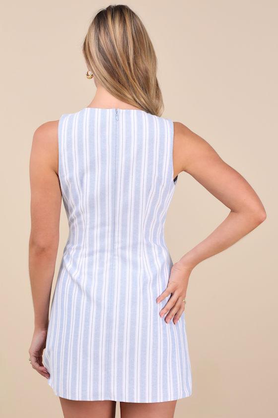 With a gelato in hand and sunnies on, you'll be looking picture-perfect in the Lulus Alyvia Blue and White Striped Linen Sleeveless Mini Dress! A summery striped design adorns this linen-like dress that starts with a chic boat neckline and a sleeveless bodice with darted accents. The figure-skimming A-line silhouette will fit your figure effortlessly as it falls to a mini hem. Hidden back zipper/clasp.