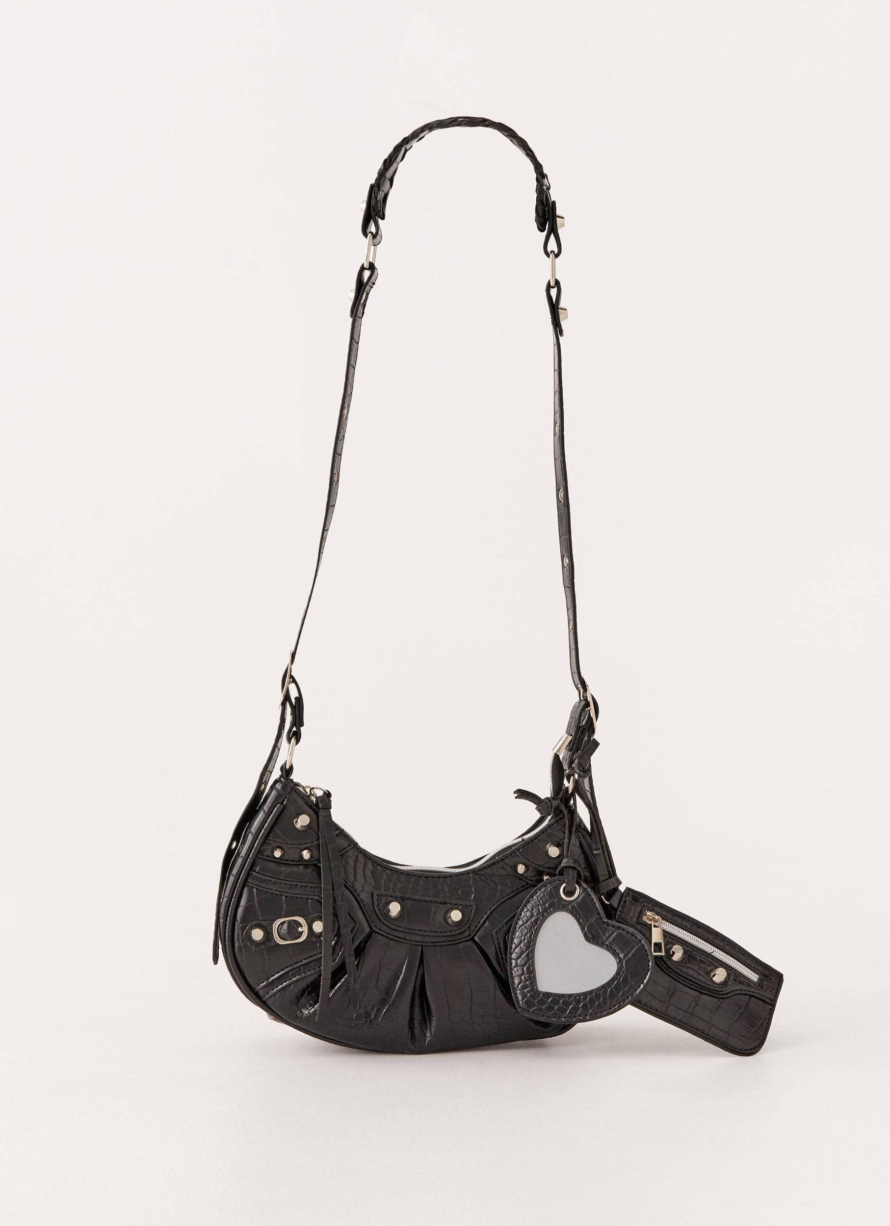 Peppermayo Exclusive Amalie Shoulder Bag featuring a sleek black design with a convenient zip closure. This versatile bag adds a touch of sophistication to any outfit, offering both style and functionality. Ideal for day-to-night wear with a modern, polished finish. - Black- Adjustable strap- Zip closure One size 28cm*8cm*15cm