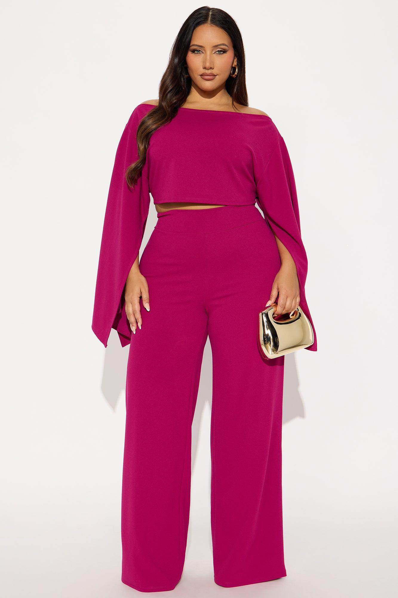 Amara Off Shoulder Pant Set - Magenta
