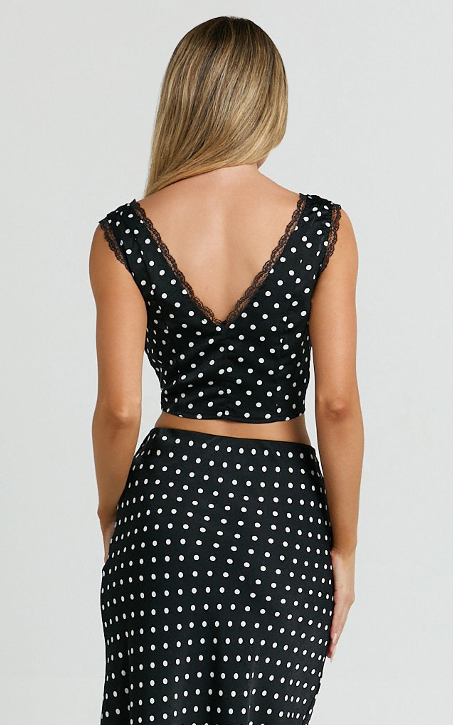 Transform your look with the Amari Top – V Neck Lace Trim Polka Dot Top in Black. This must-have women’s top is all about effortless chic, perfect for your everyday casual vibe or amping up your weekend plans. Made from mid-weight woven polyester, it feels soft yet structured for all-day comfort. The standout V neck, flattering sleeveless design, and delicate lace trim create an instantly elevated look, whether you dress it up with tailored pants or keep it chill in classic denim.Product Details:Sleeveless design V neckline Mid weight woven Polyester fabric Standard length Perfect for casualSize and FitSize S / 8 length: 41cm / 16.14inMaterial and Care100% PolyesterNo Stretch
