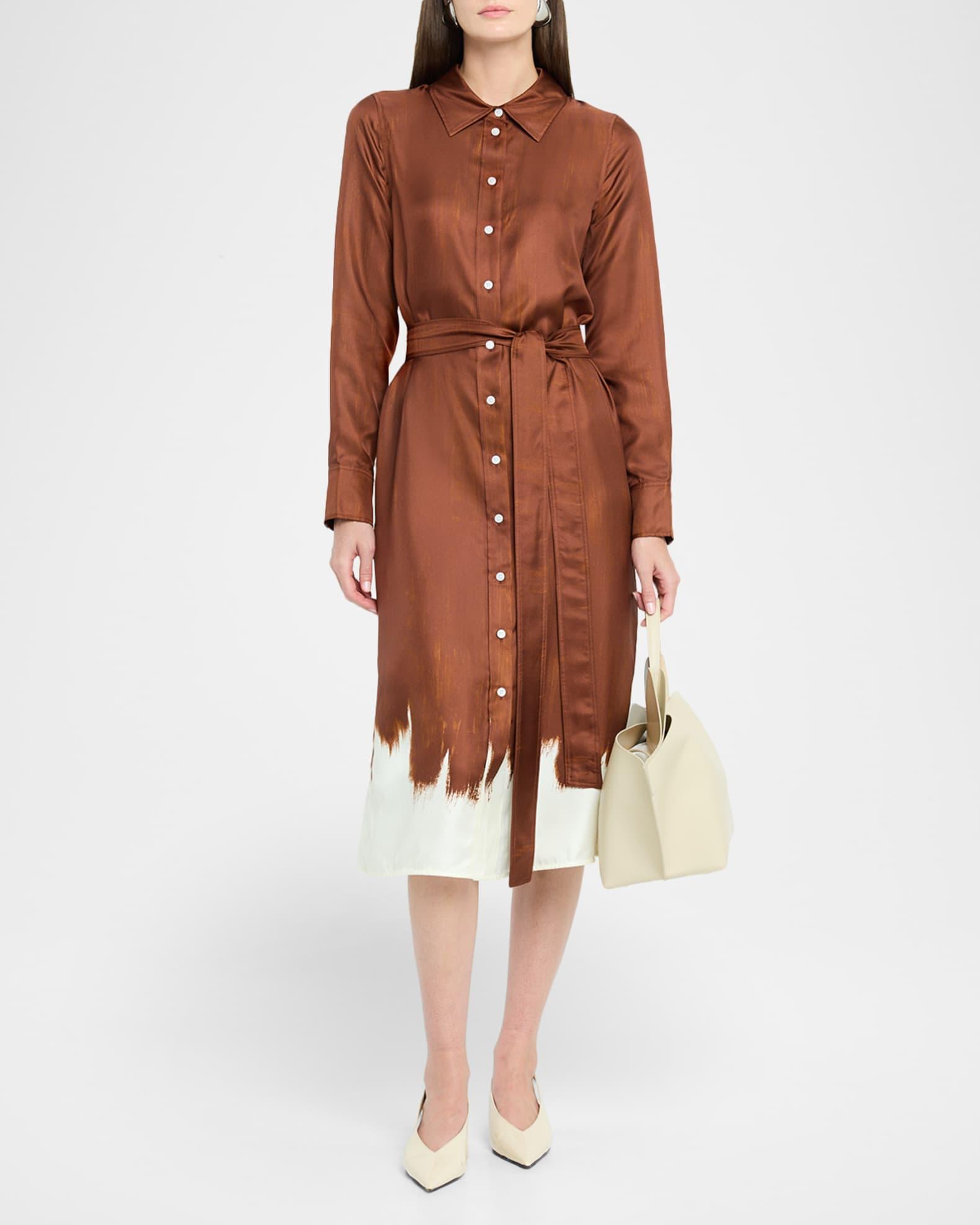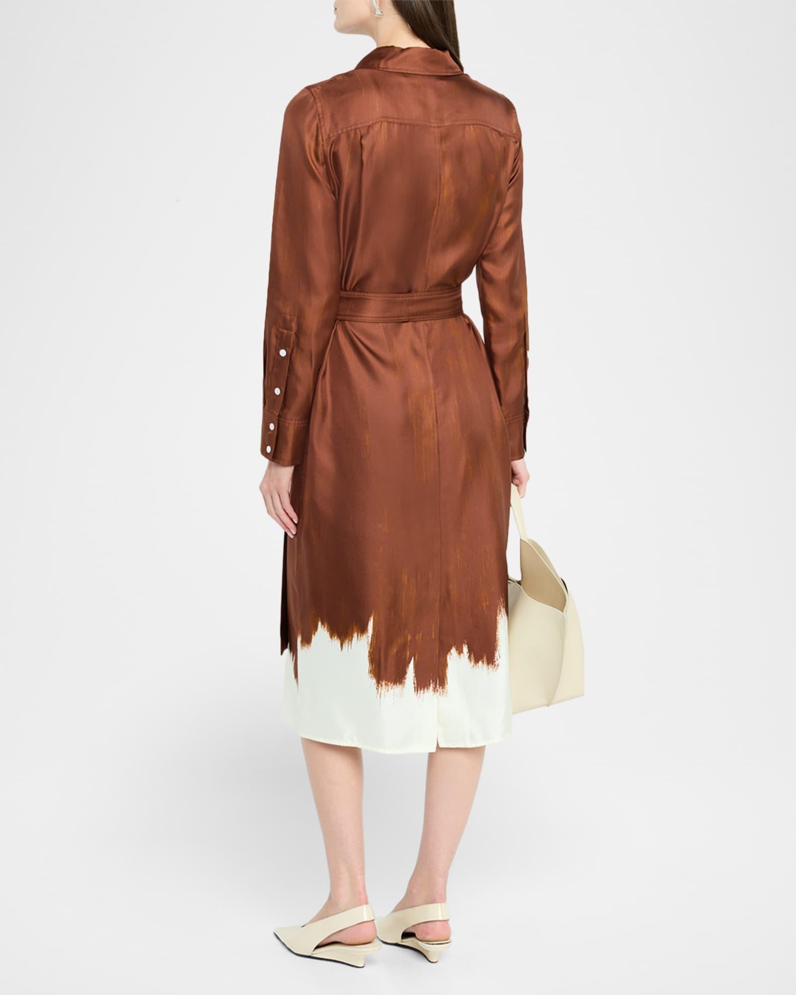 Amaya Double-Printed Tie Waist Silk Twill Dress