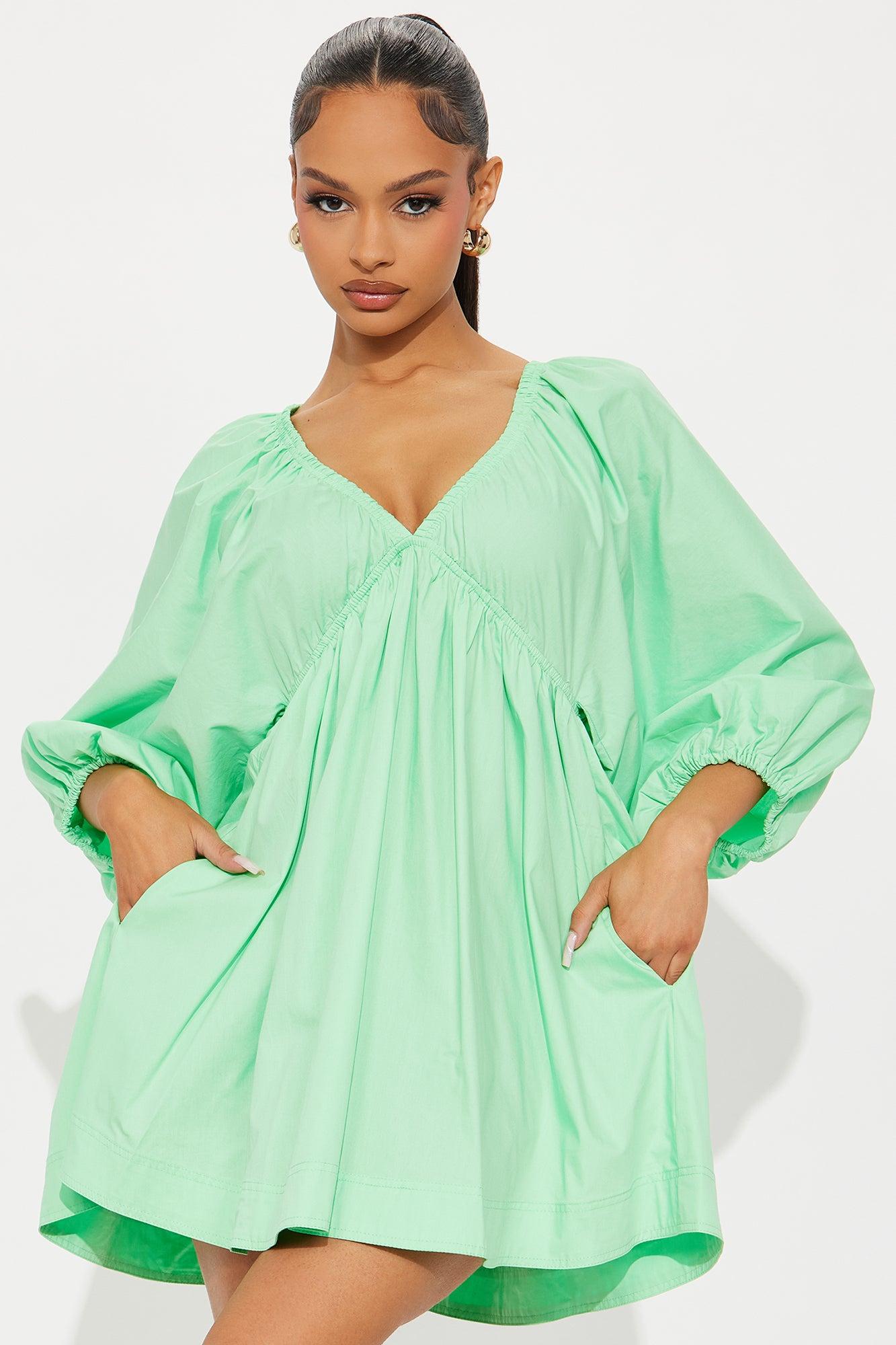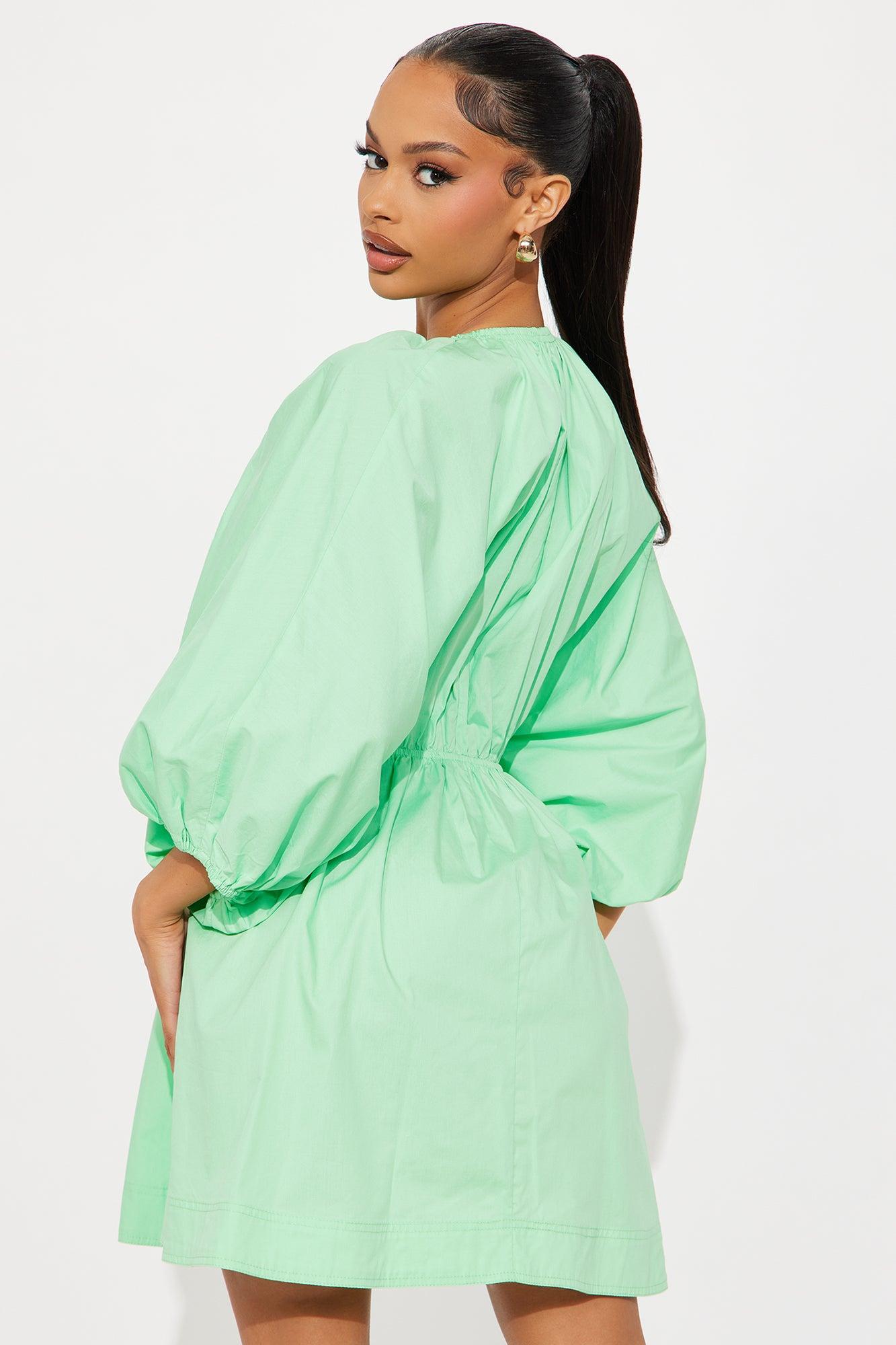 Amaya Poplin Puff Sleeve Mini Dress - Mint