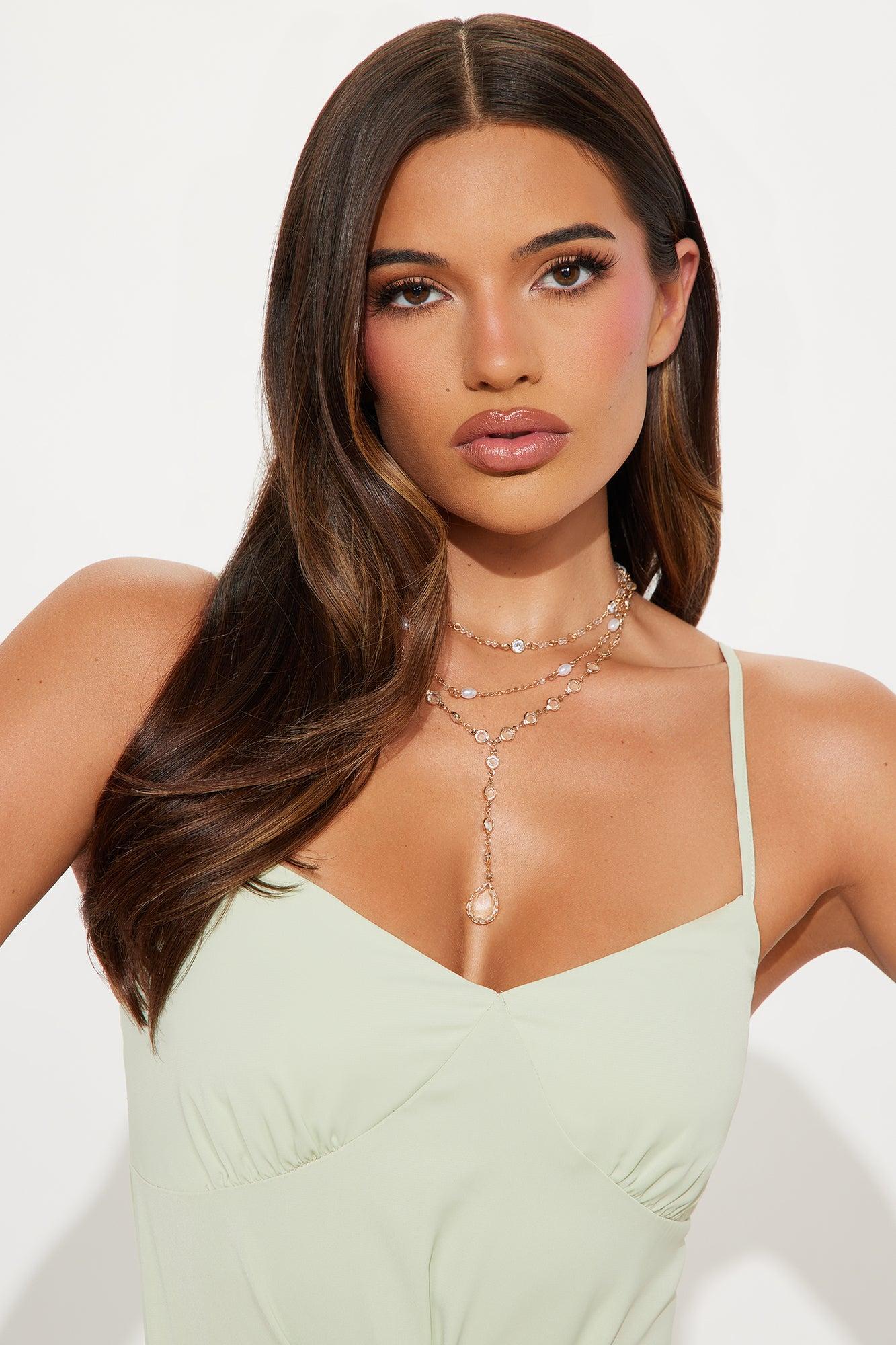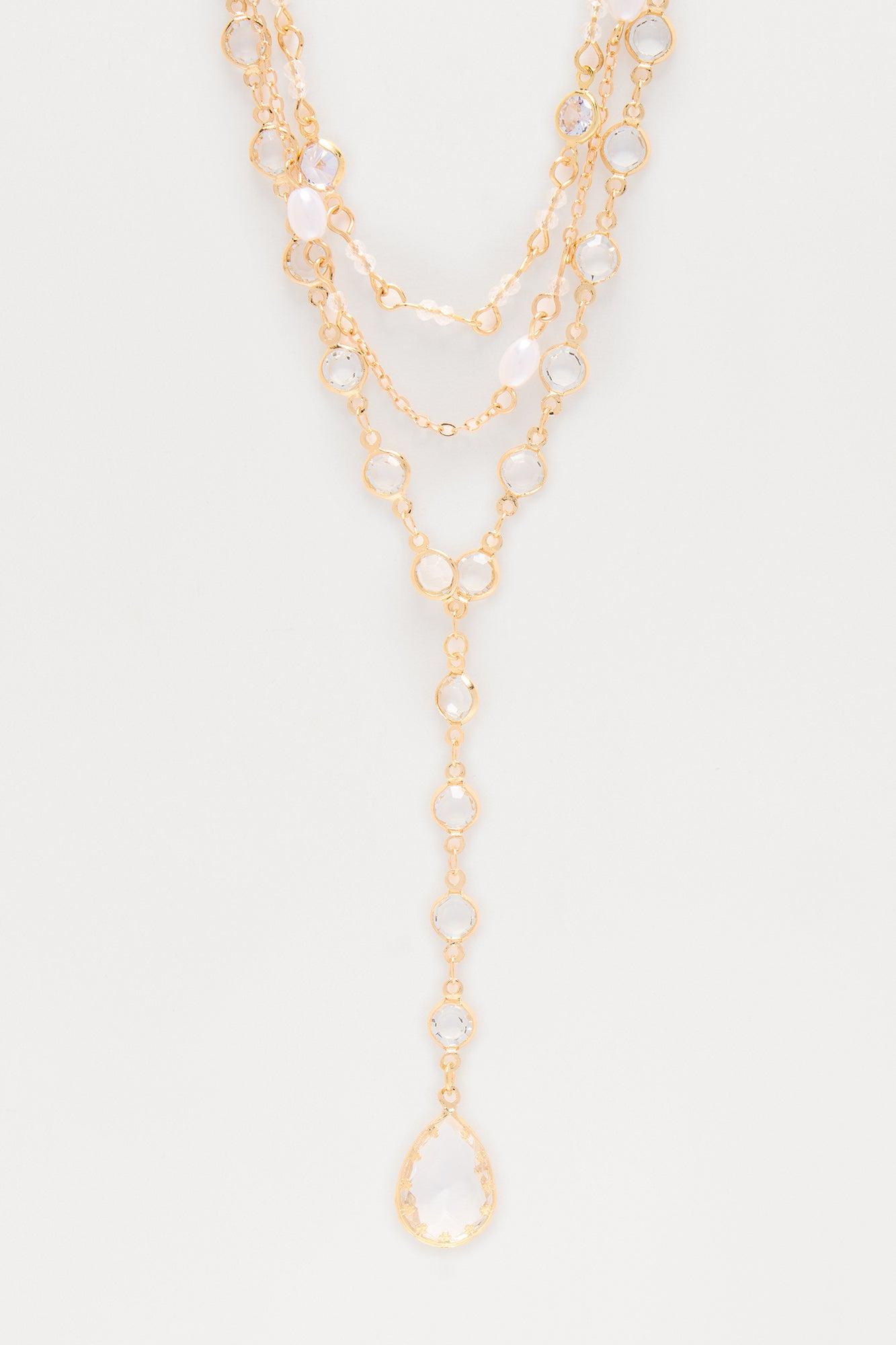 Available In Gold. Layered Necklace Lobster Clasp Detail Rhinestone Detail Imported