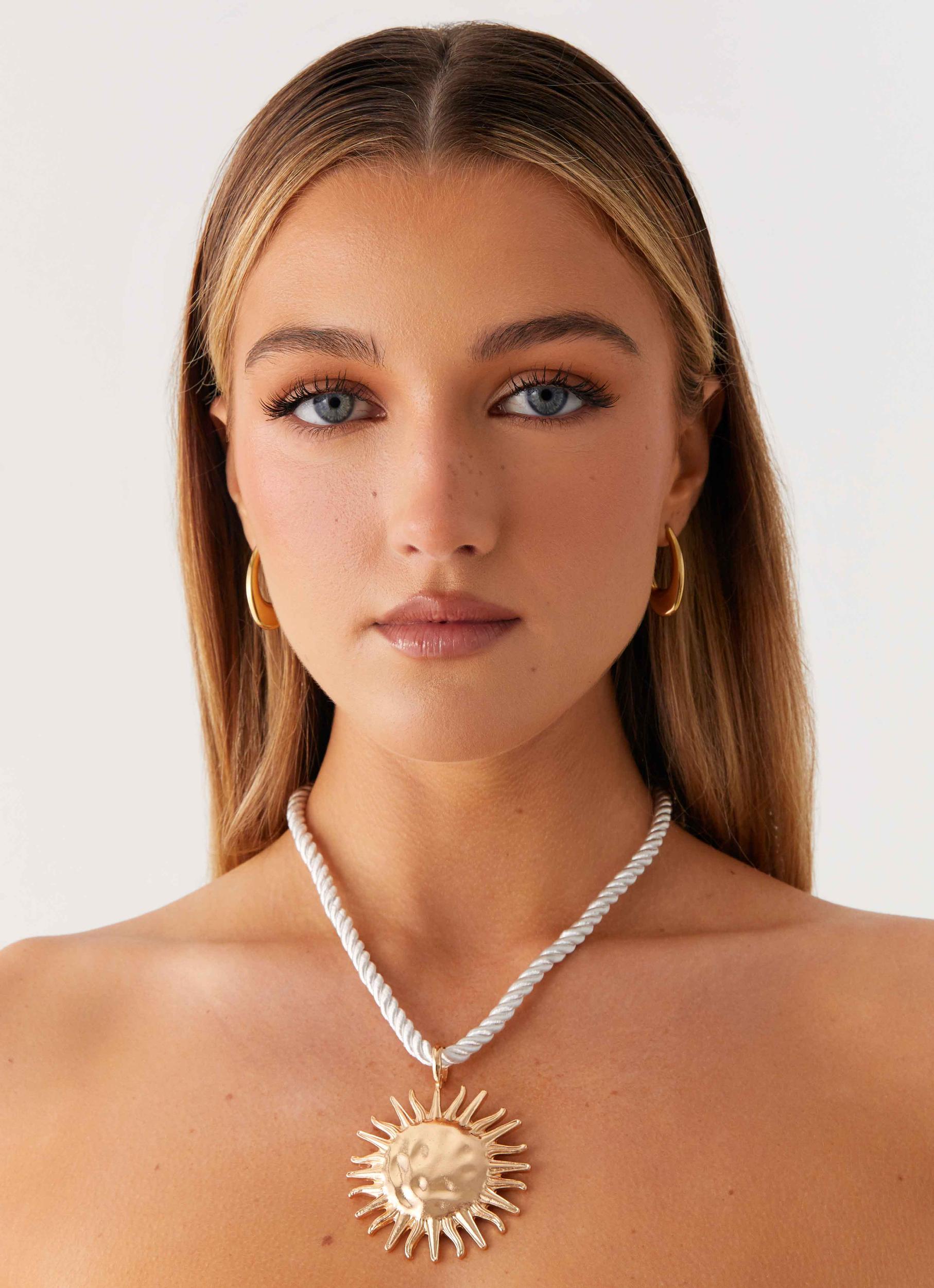Peppermayo Exclusive The Amber Necklace adds a touch of elegance to your evening look. Crafted from durable alloy, this necklace is perfect for shimmering under golden skies. - Material: Alloy- Length: 42 cm + 7 cm extension- Pendant size: 5.4 cm