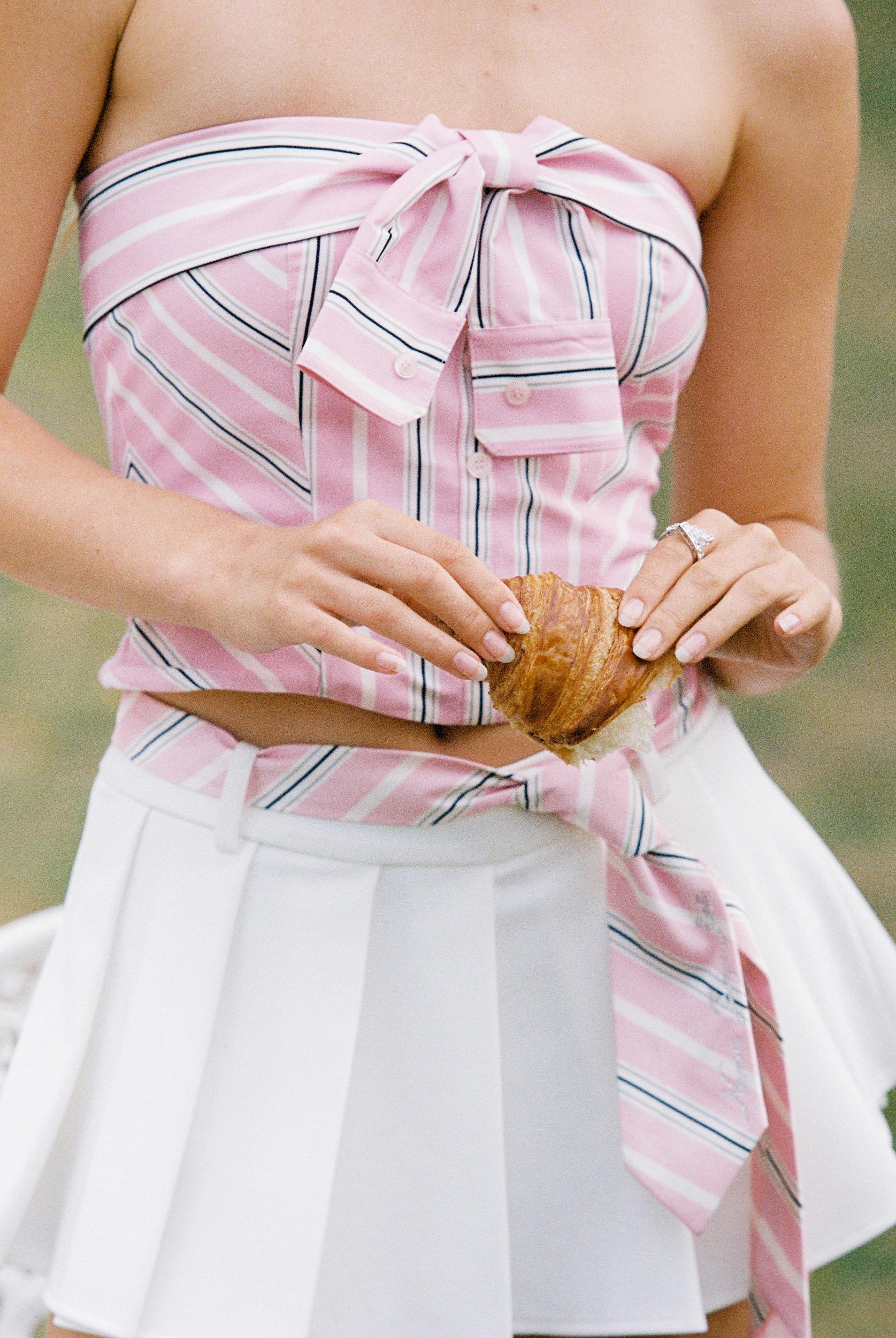 The Amber Tie reimagines classic accessories through a playful, feminine lens. Designed in a fresh pink and white striped print with subtle black accents, this tie radiates charm and academic elegance while offering endless styling possibilities. Whether worn traditionally at the collar or styled around the waist, this versatile piece adds a polished, fashion-forward twist to any outfit.