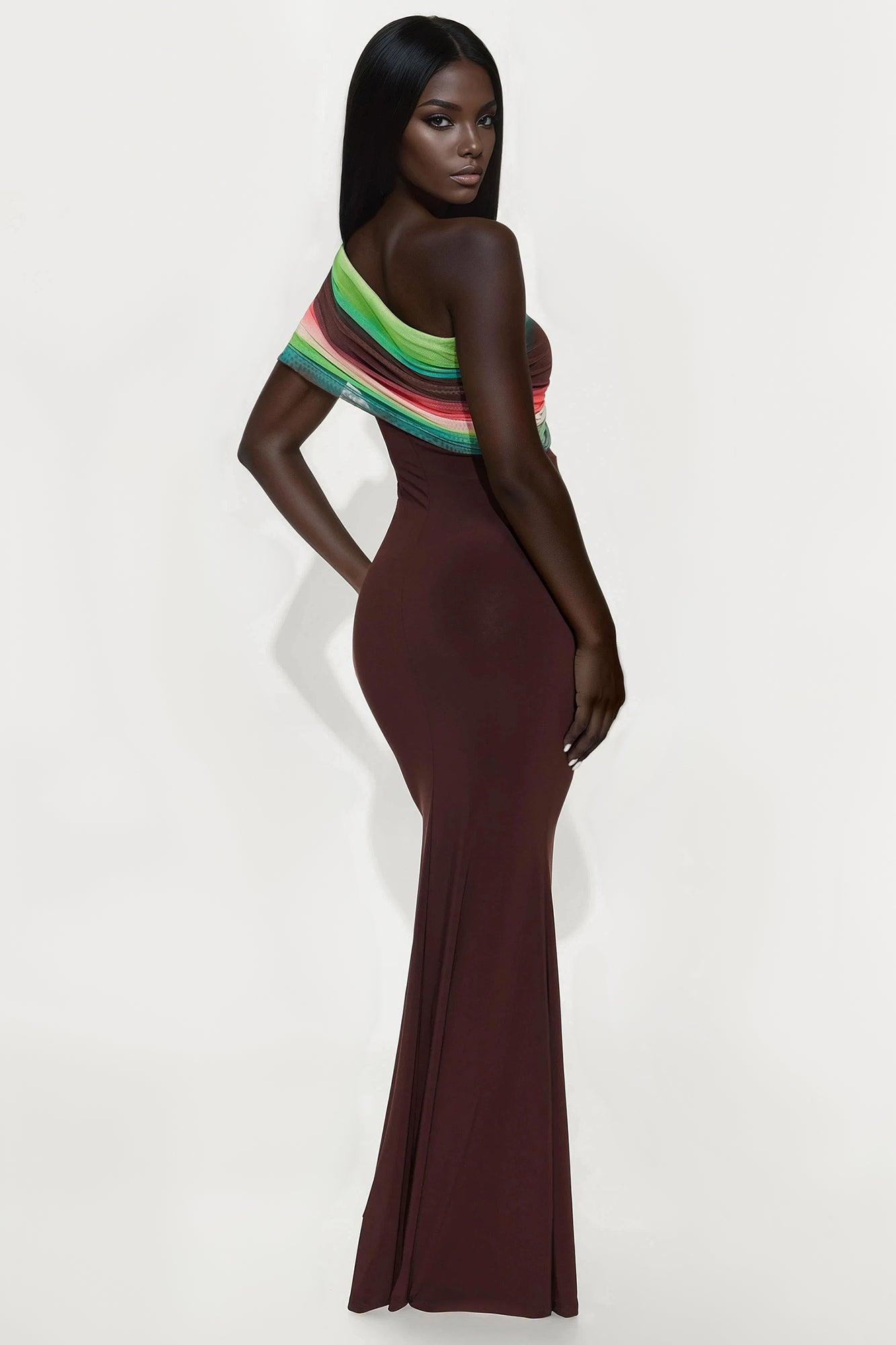 Amelia One Shoulder Maxi Dress Set - Brown Combo Female