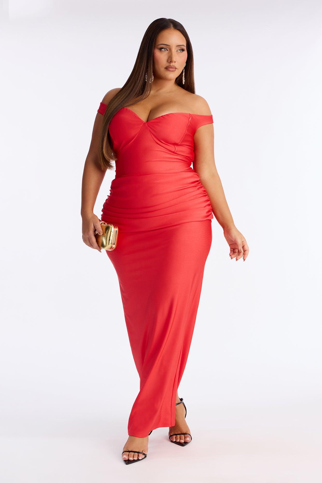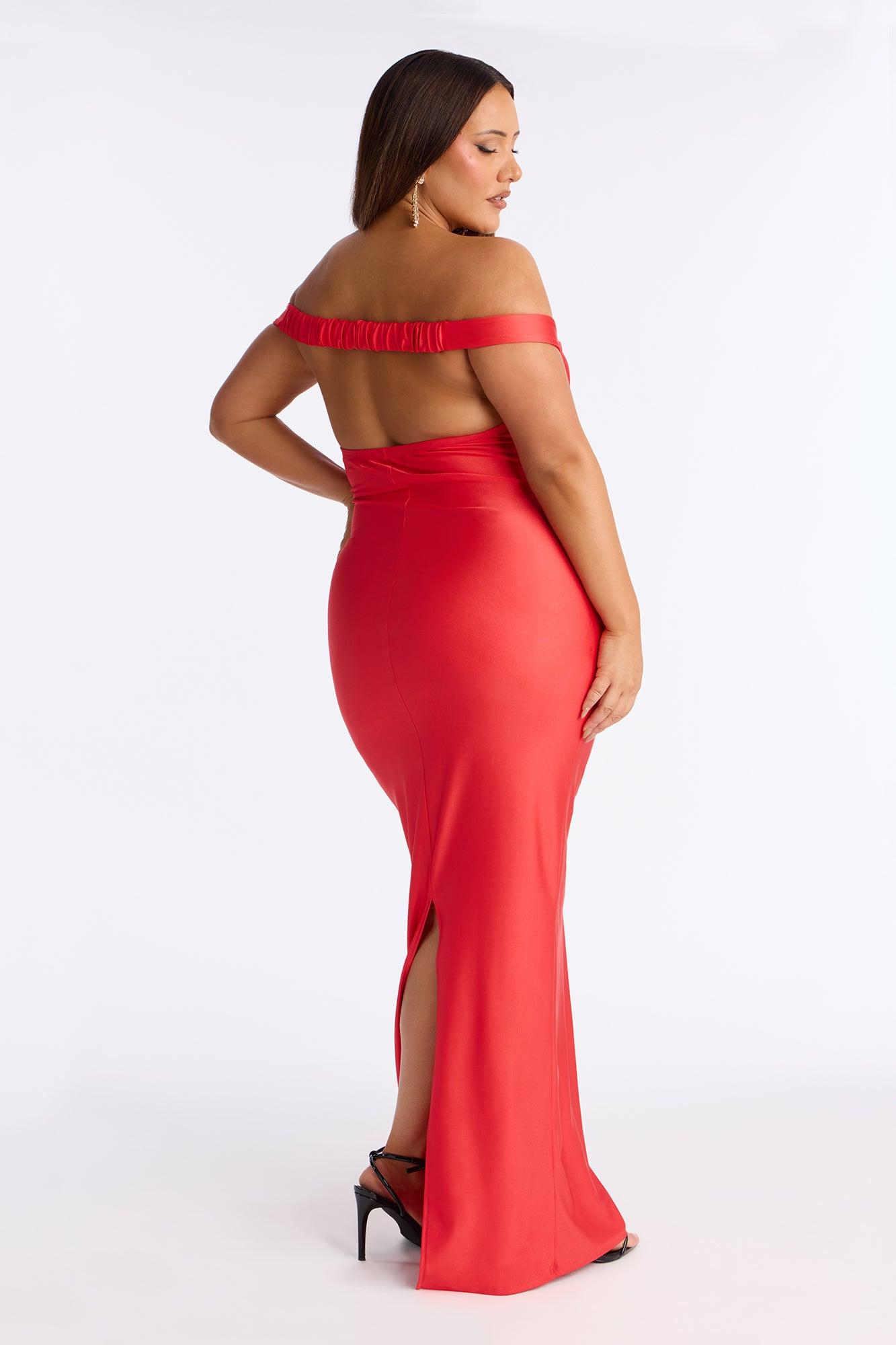 Amelya Off Shoulder Tricot Gown - Tomato Red Female