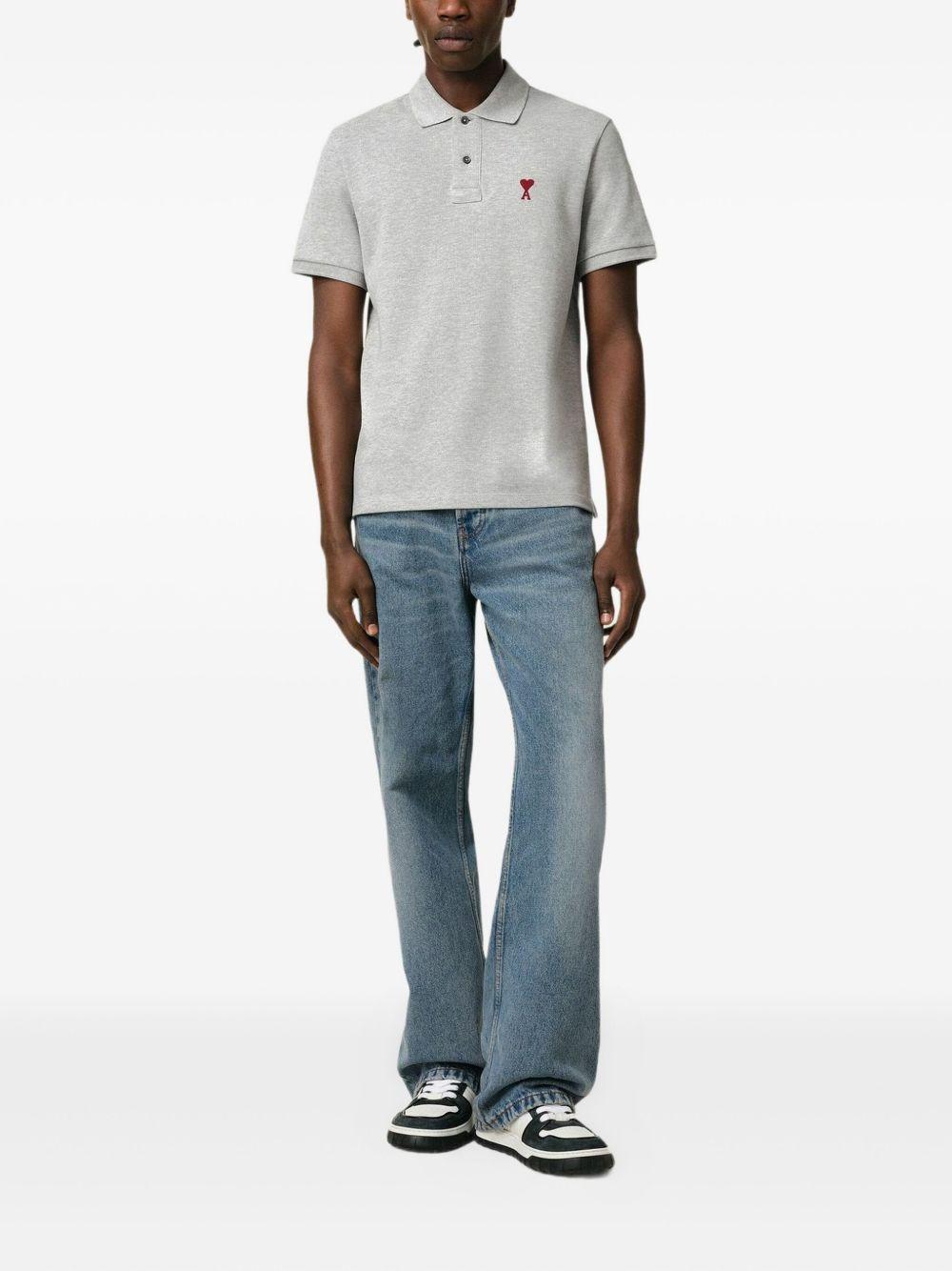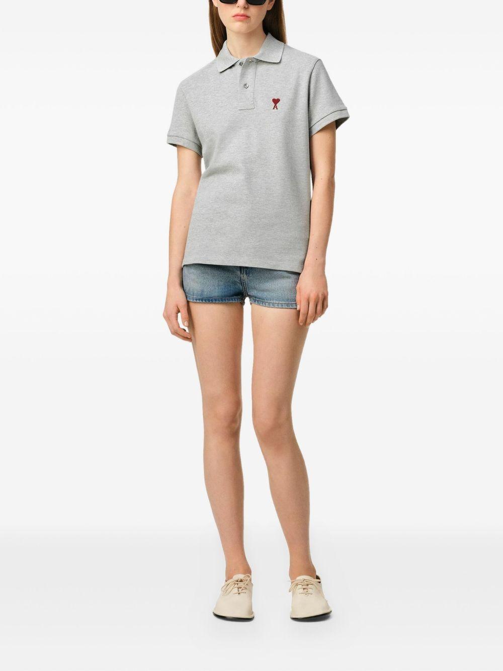 AMI Paris Ami De Coeur organic-cotton polo shirt | Grey | Organic Cotton | Polo Tops | Tops | Clothing | Women | Polo Shirts | Clothing | Men