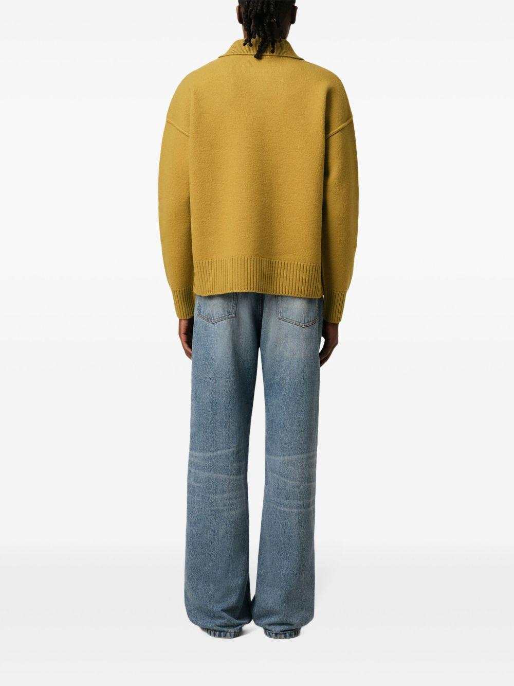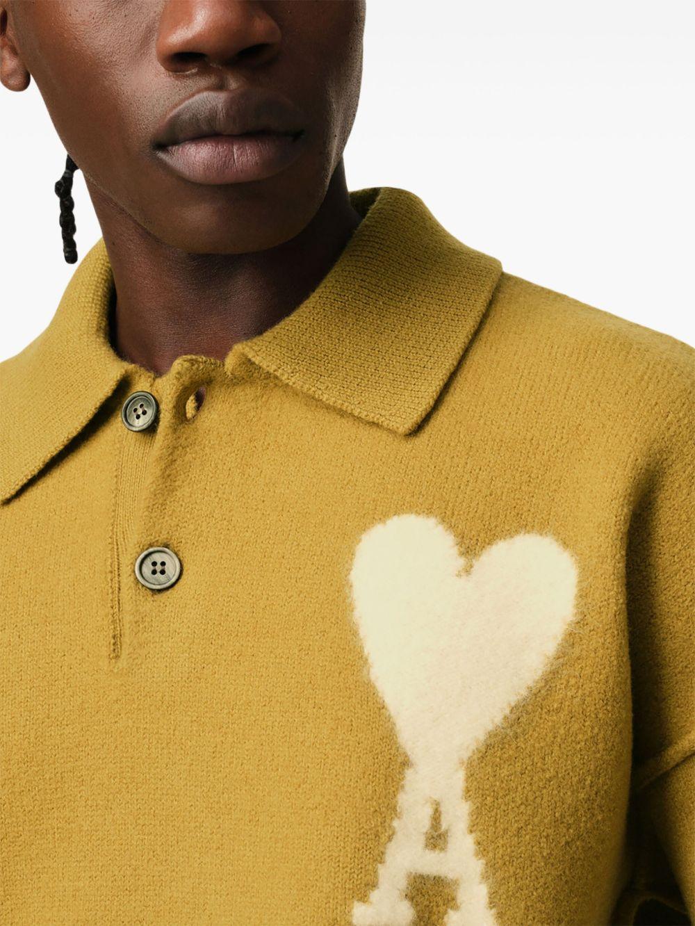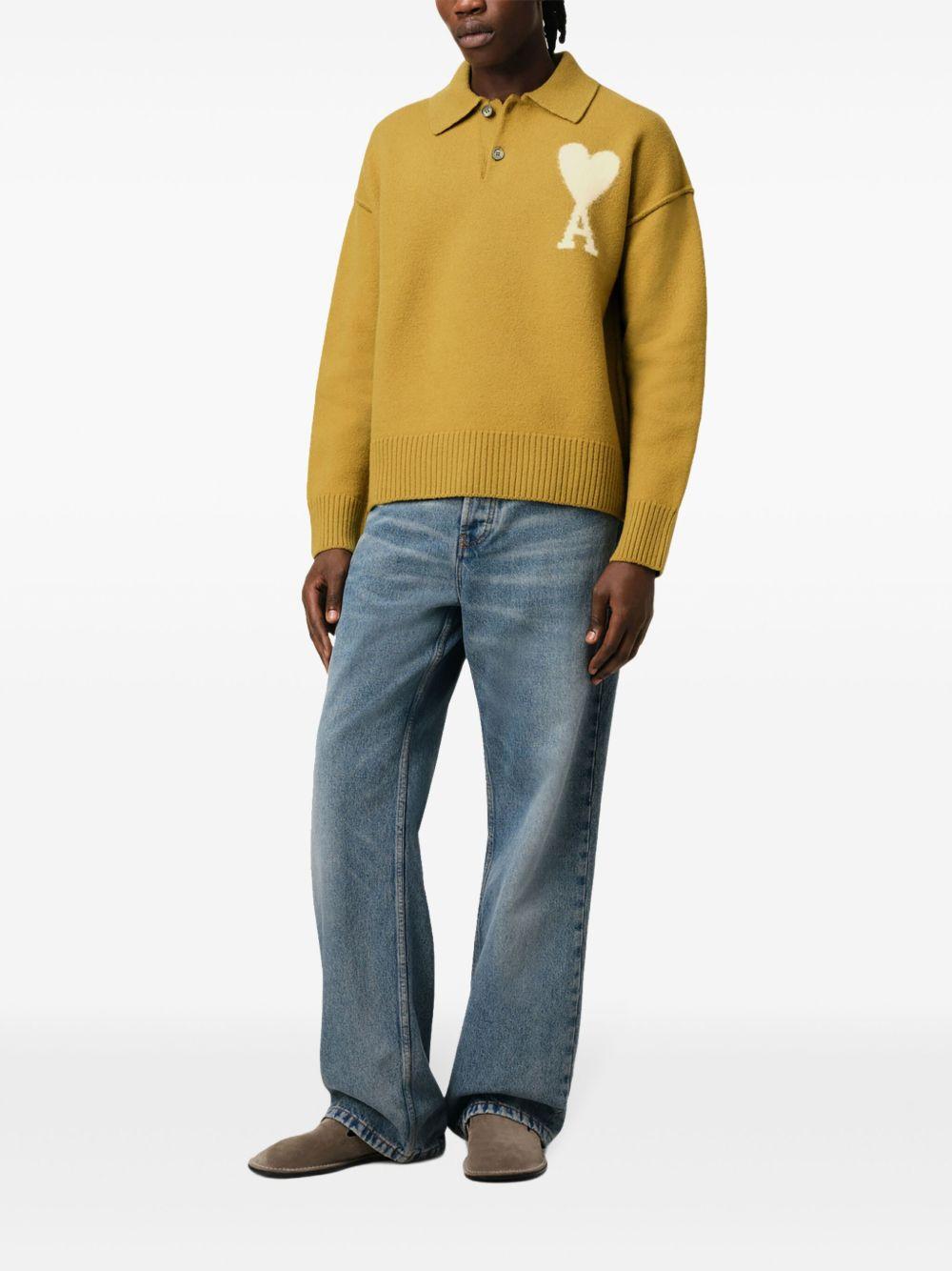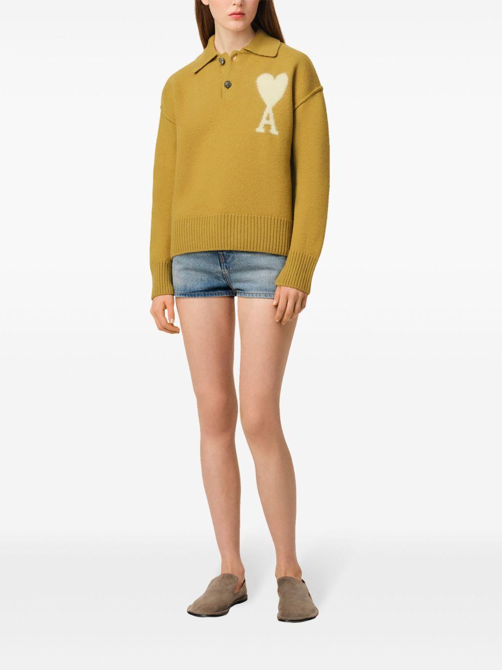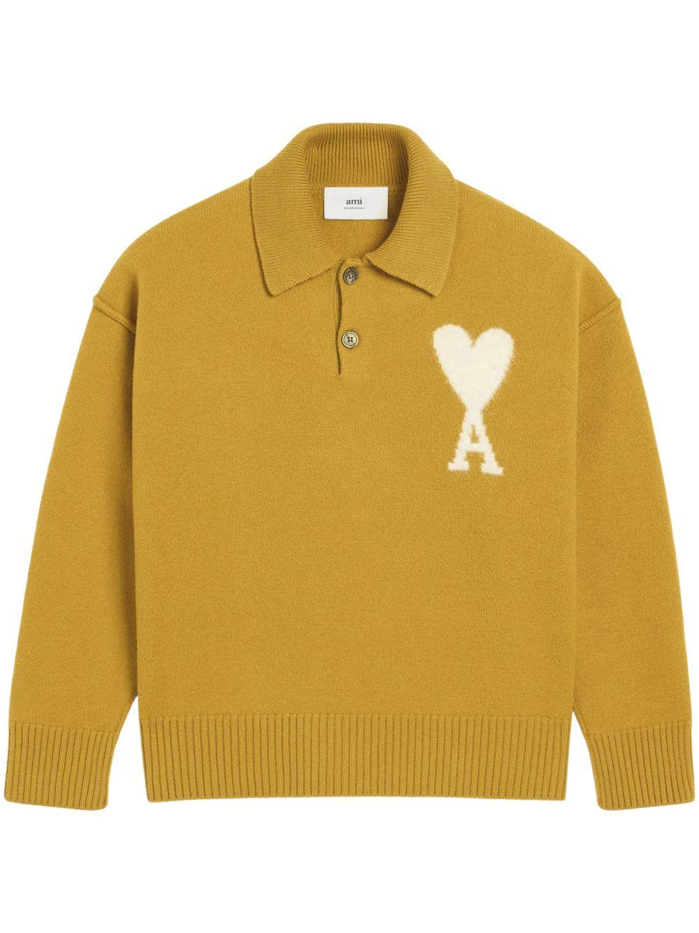 AMI Paris Ami de Coeur polo shirt | Yellow | yellow | front button placket | polo collar | long sleeves | When buying this unisex item, keep in mind that it is graded in standard men's sizing. | Alpaca Wool/Polyamide/Wool/Spandex/Elastane | Polo Tops | Tops | Clothing | Women | Polo Shirts | Clothing | Men