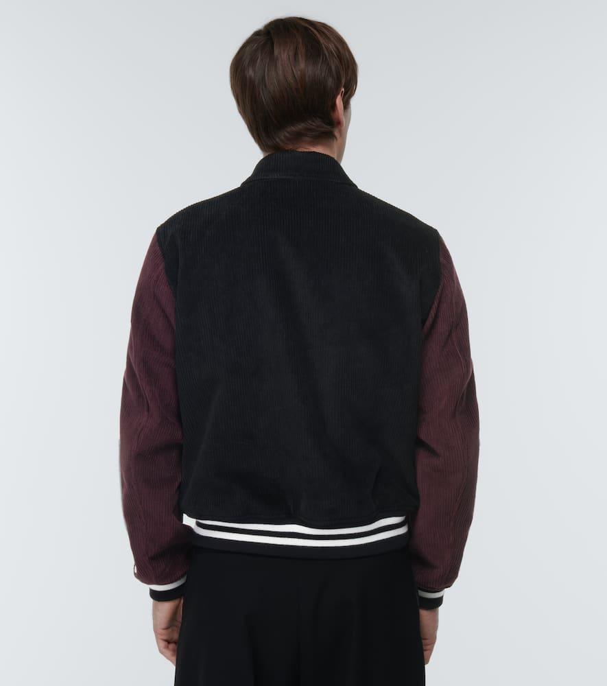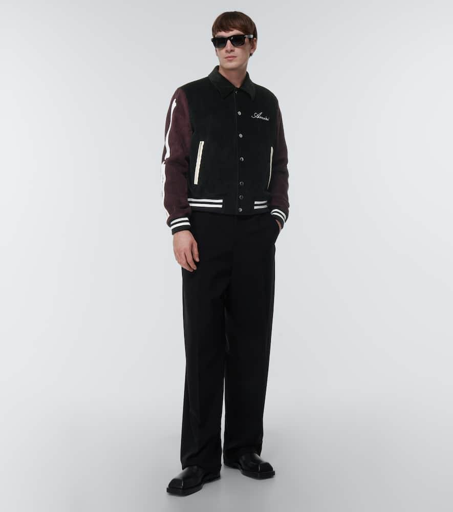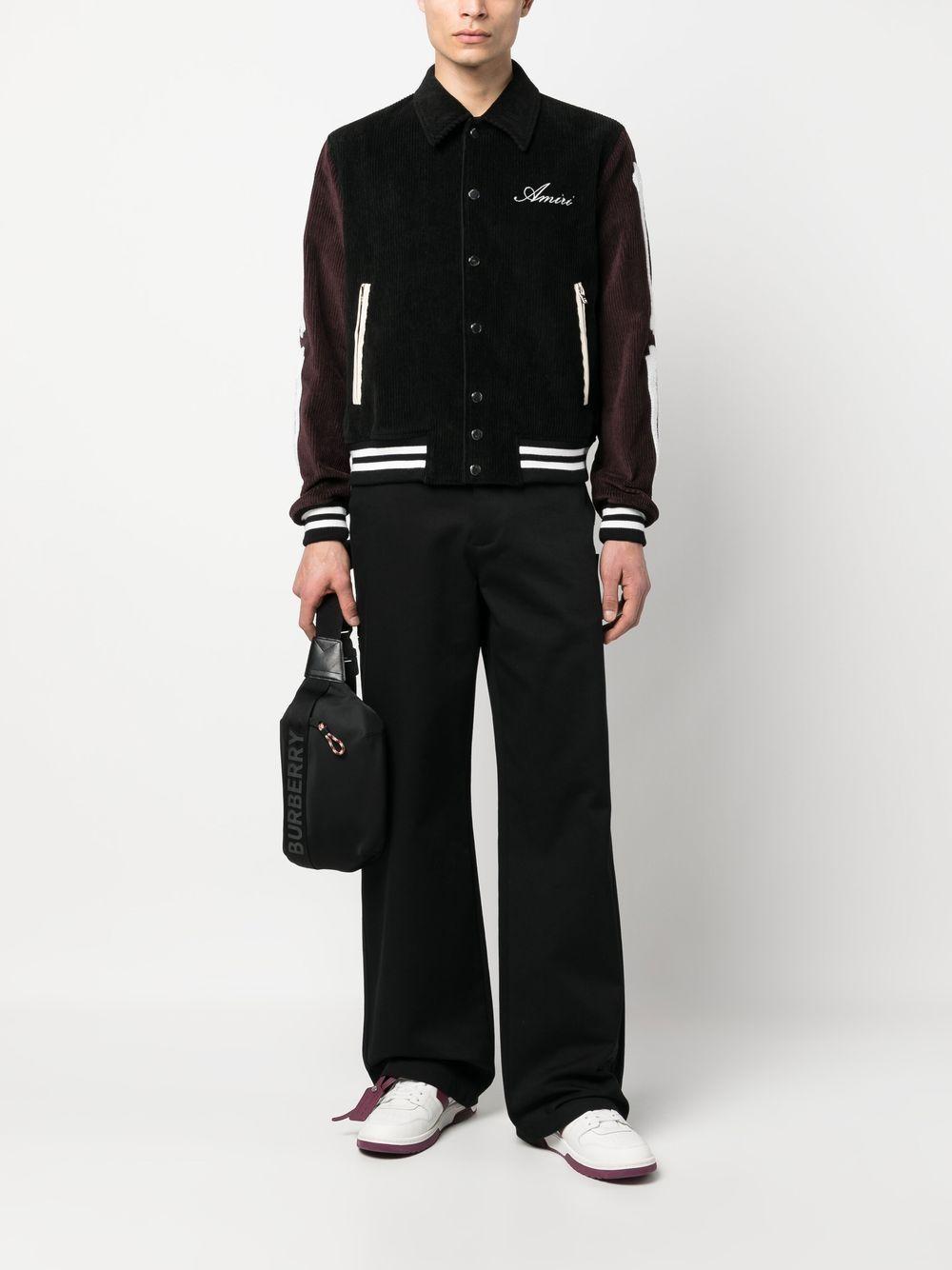 Shop Amiri Panelled Corduroy Varsity Jacket In Black from 800+ stores, starting at $1014. Crafted from black and burgundy corduroy, this varsity jacket from Amiri exudes sporty retro flair. The style is finished with logo embroidery, the brand's iconic bone appliques on the arms, and press stud buttons.