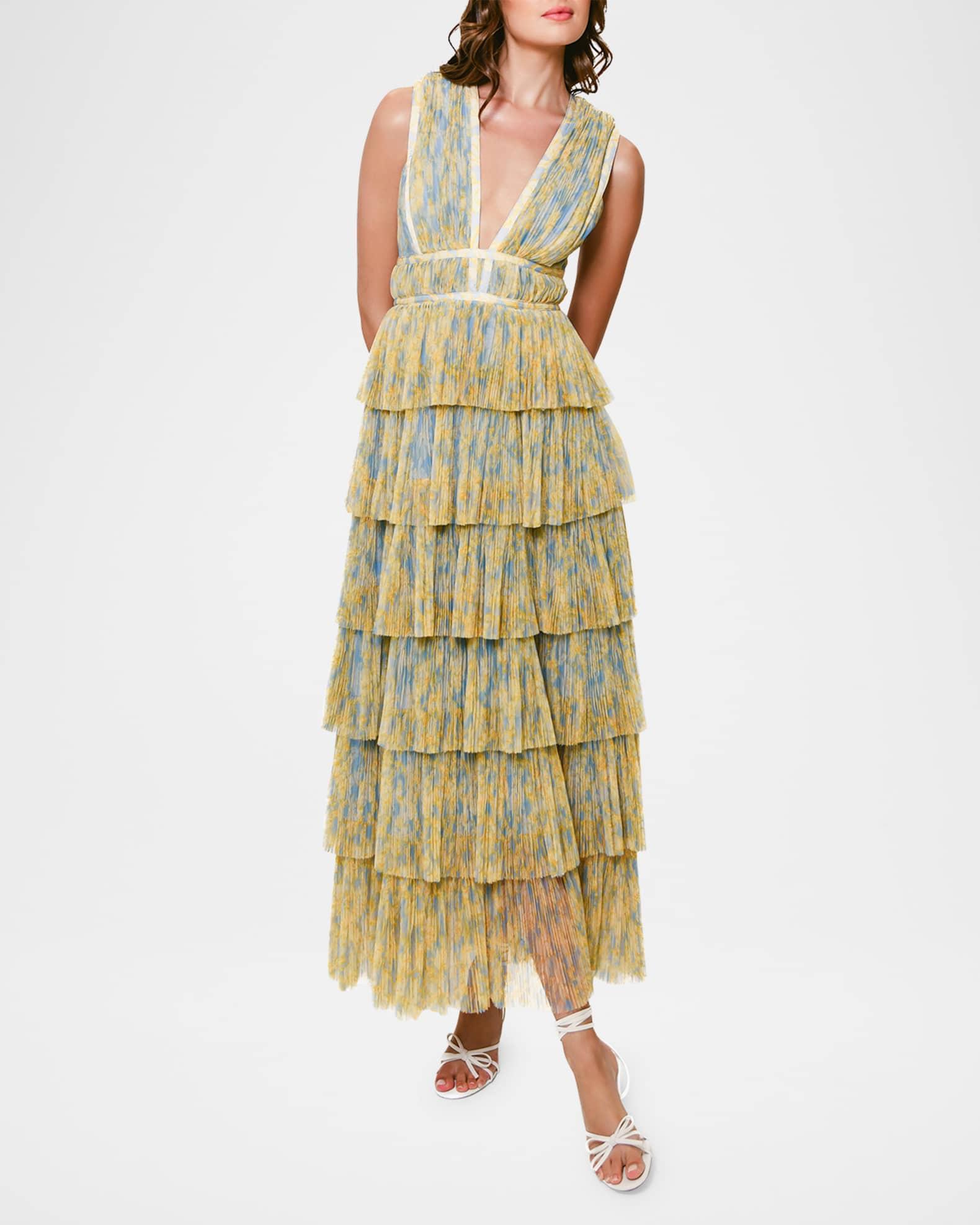 Amora Deep V-Neck Tiered Tulle Gown