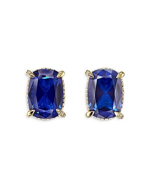 The Londoner continues her foray into eco-conscious jewelry and nature’s otherworldly wonders with exquisite creations inspired by the ocean’s sublime beauty. The assortment radiates a mystical glow with her signature lab-grown; sustainable gemstones. A whimsical twist on a classic; inspired by the delicate beauty of butterfly wings; these stunning stud earrings feature laboratory-grown and created gemstones including two cushion-cut royal blue sapphires of 10 carats; in an intricate setting of 18k yellow gold vermeil and 18k gold earring posts; with pavé-set simulated white diamonds.