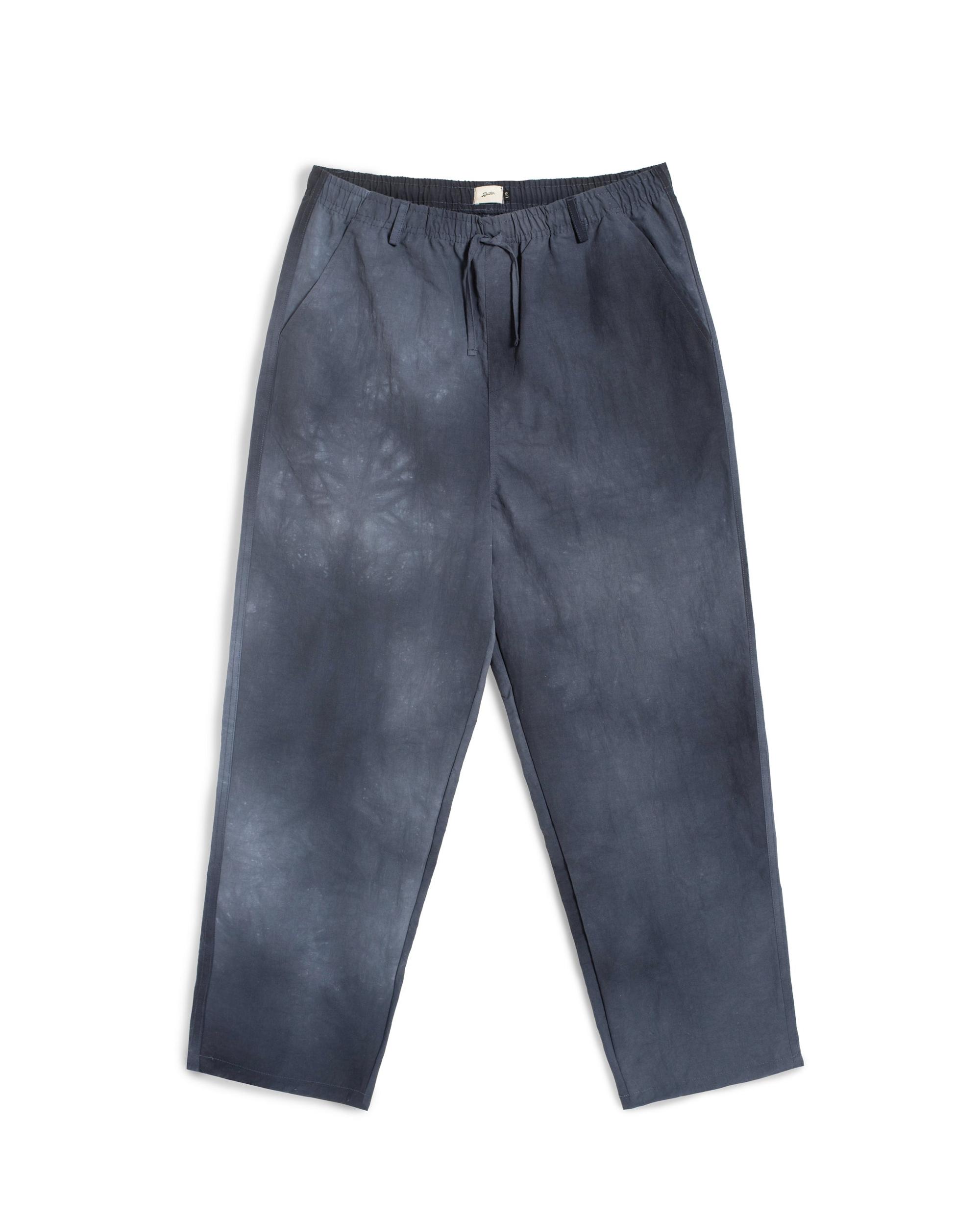 The new Leisure Pant for FW25 comes in a hand-dyed nylon imported from Korea. Featuring a DWR finish and sinch ties at the leg opening, each piece is slightly unique from the tie-dye-like finish in the hand dying process. Available in Anchor and Canyon. Easily paired with the matching Wave Dye Tour Shirt.