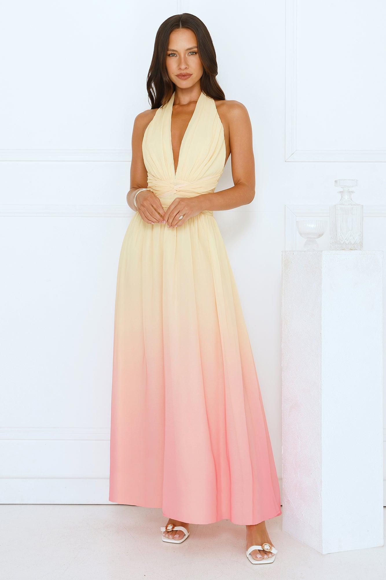 Angel Bloom Halter Maxi Dress Yellow