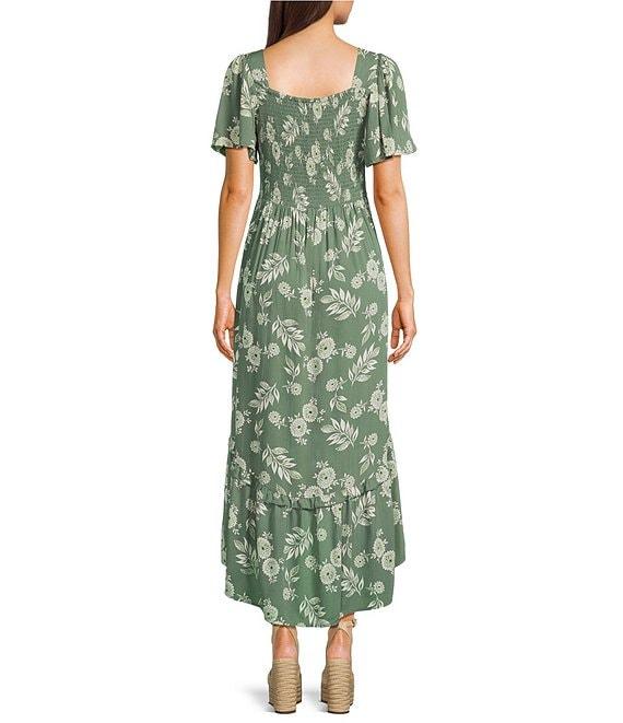 Angie Floral Printed Puff Sleeve Scoop Neck Corset Midi Dress