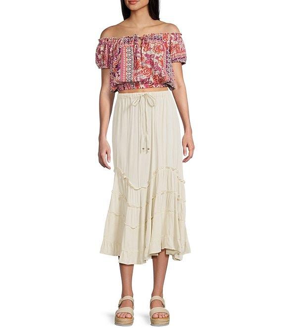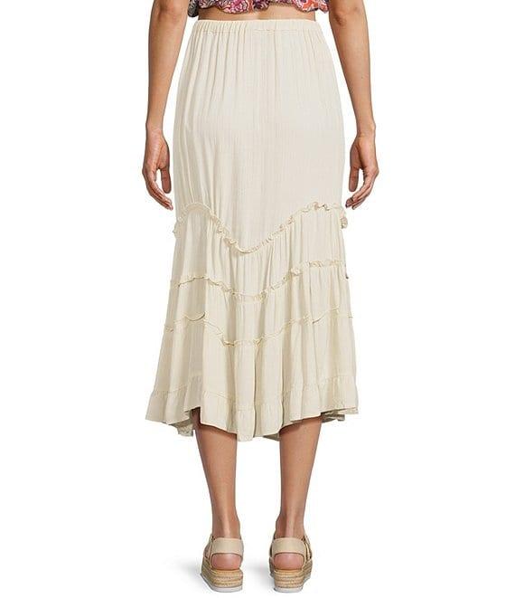 Angie Tie Front Ruffle Midi Skirt