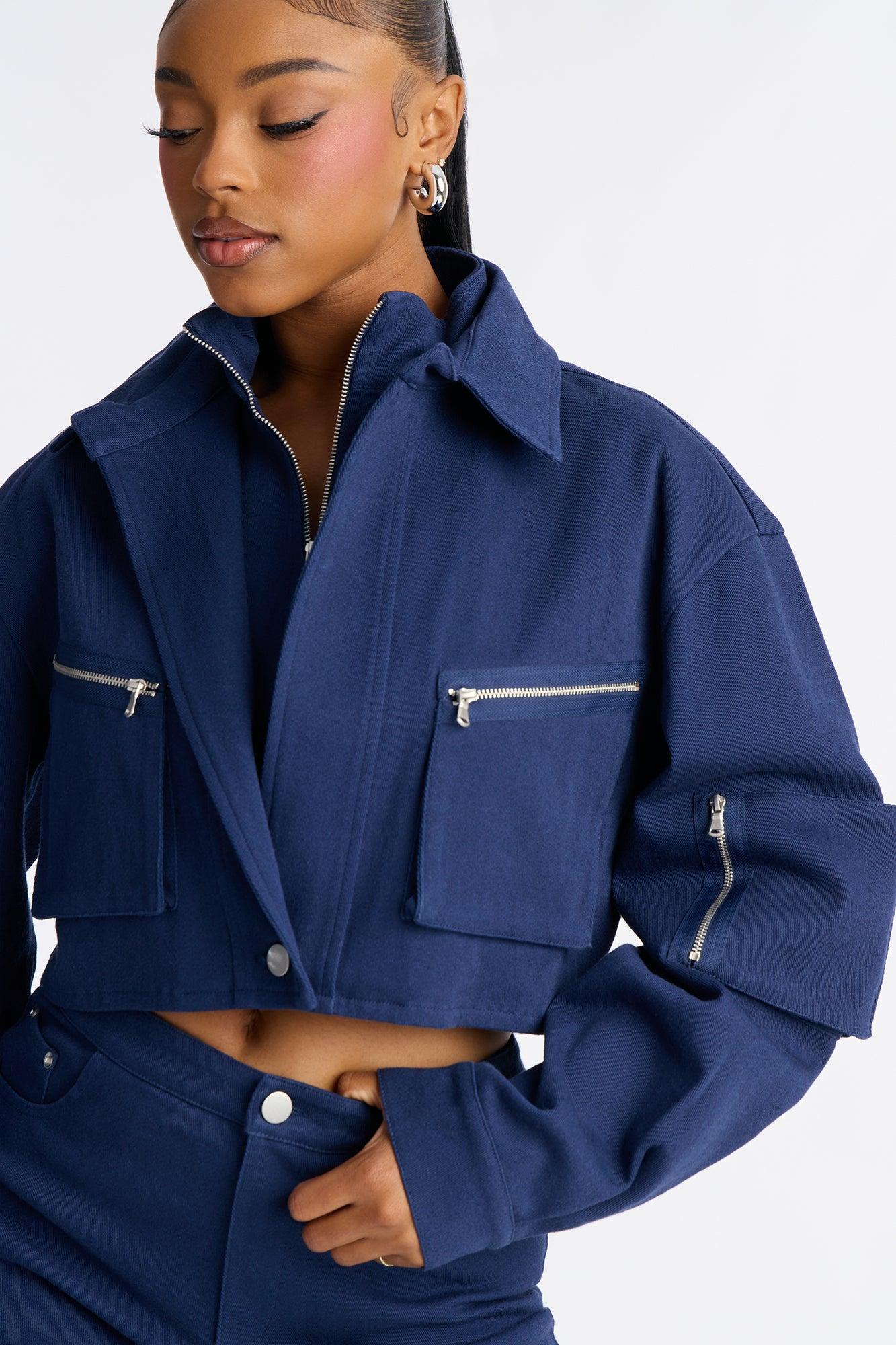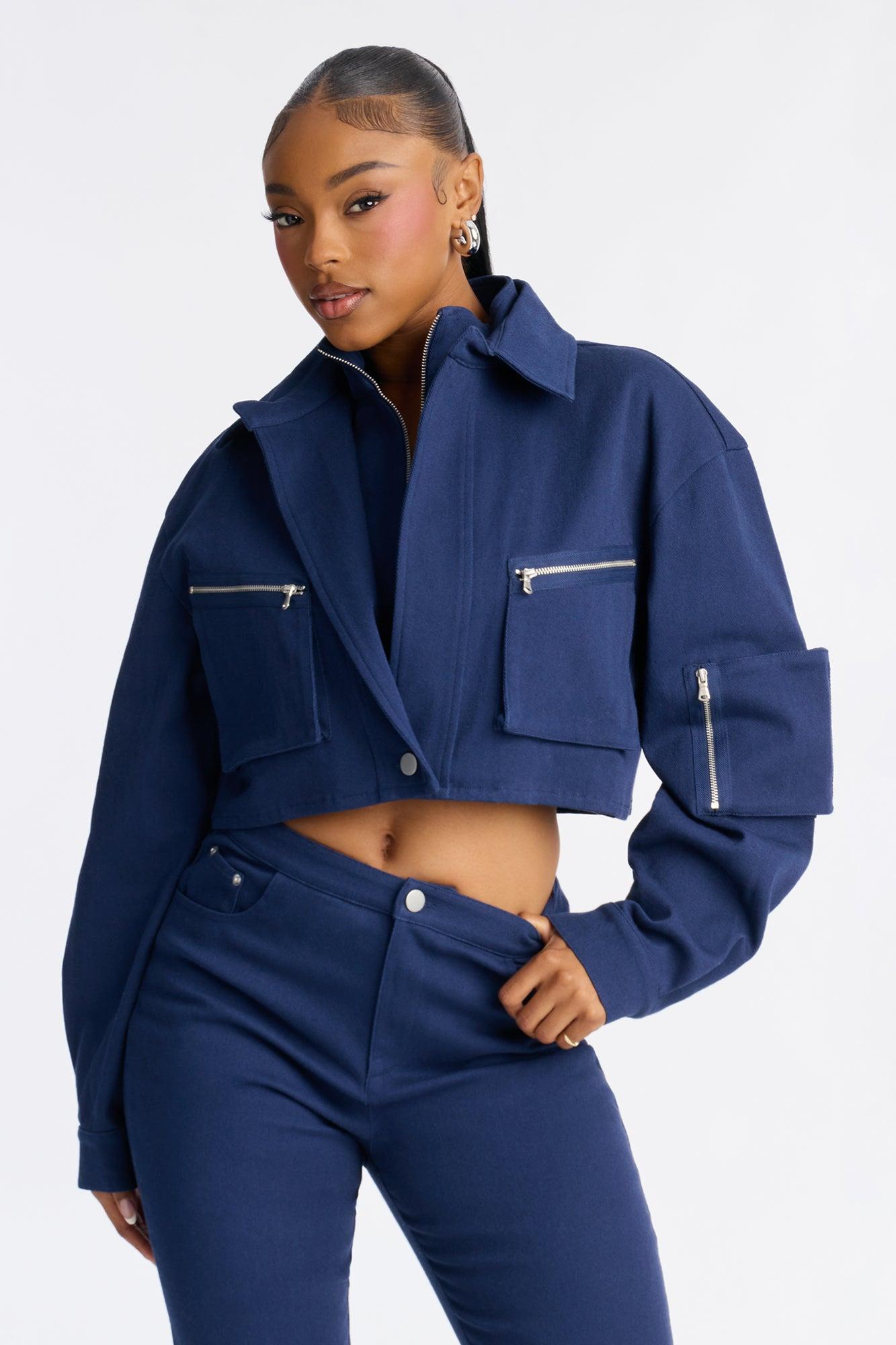 Angie Twill Cropped Jacket Capri Set - Blue Female