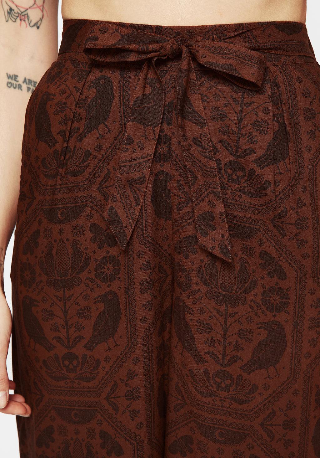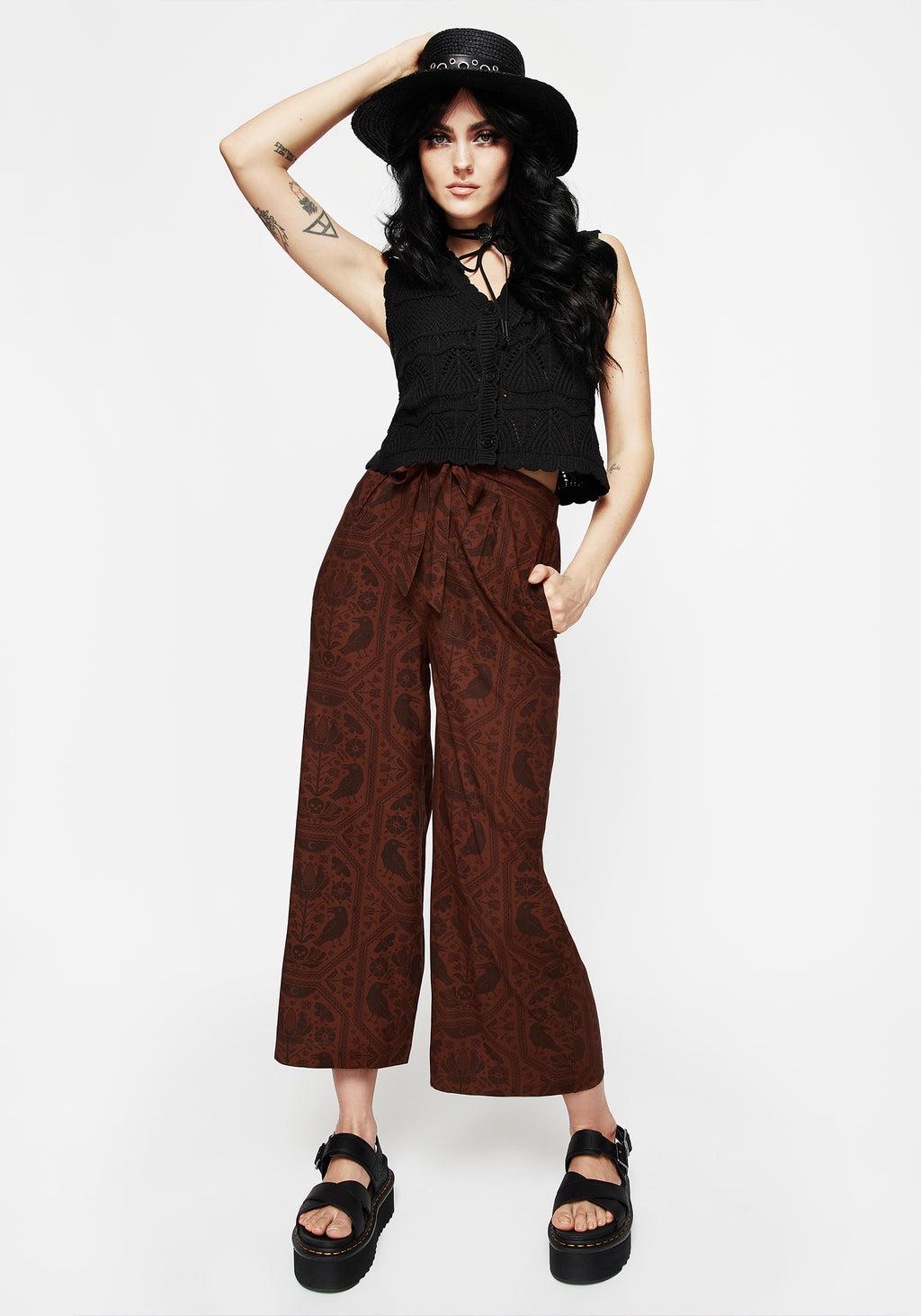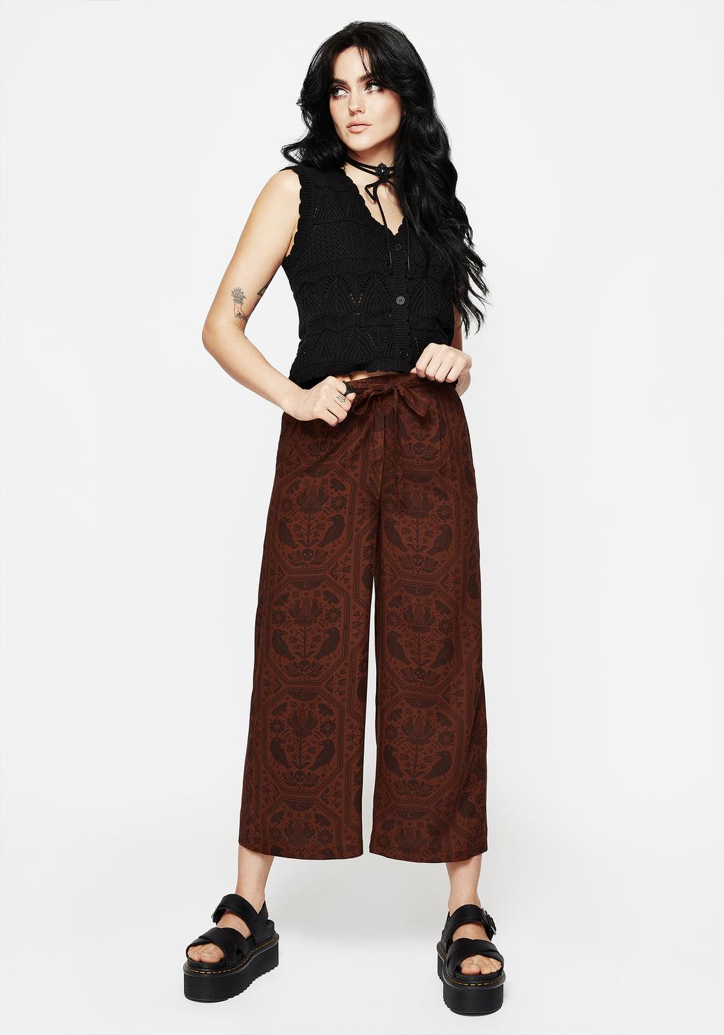 Annabel Tie Waist Wide Leg Culotte Trousers - Rust