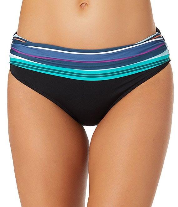 Anne Cole Barcode Multi Color Stripe Fold Over Hipster Swim Bottom