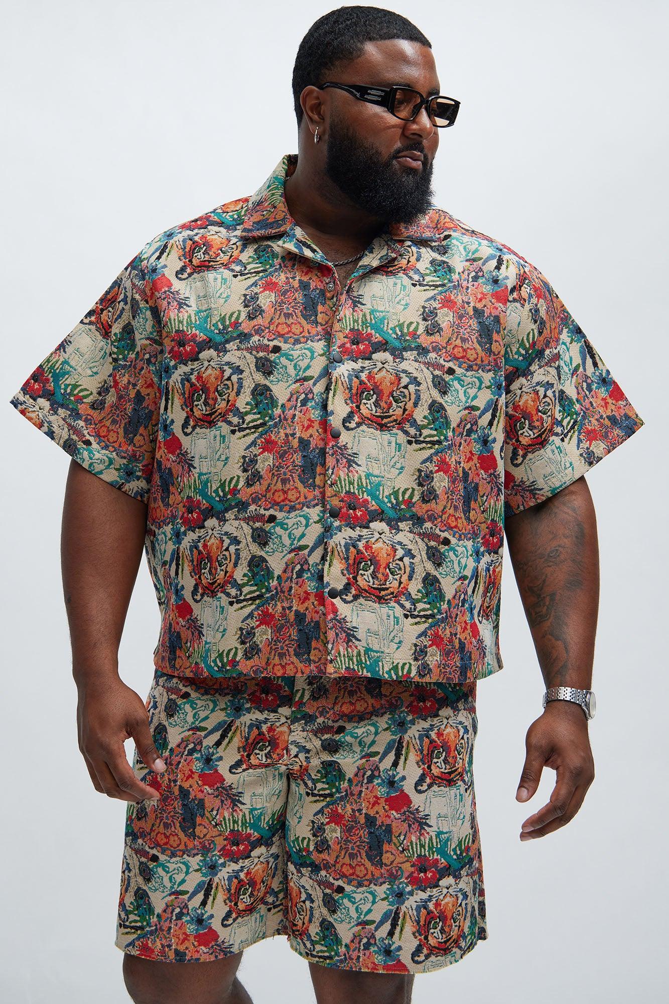 Available In Multi Color. Fold Down Collar Front Button Closure Short Sleeve Disclaimer: Pattern Placement May Vary. 80% Polyester, 20% Cotton Pair With "Ansel Tapestry Relaxed Shorts" Imported California Proposition 65WARNING: Cancer and Reproductive Harm - www.P65Warnings.ca.gov.
