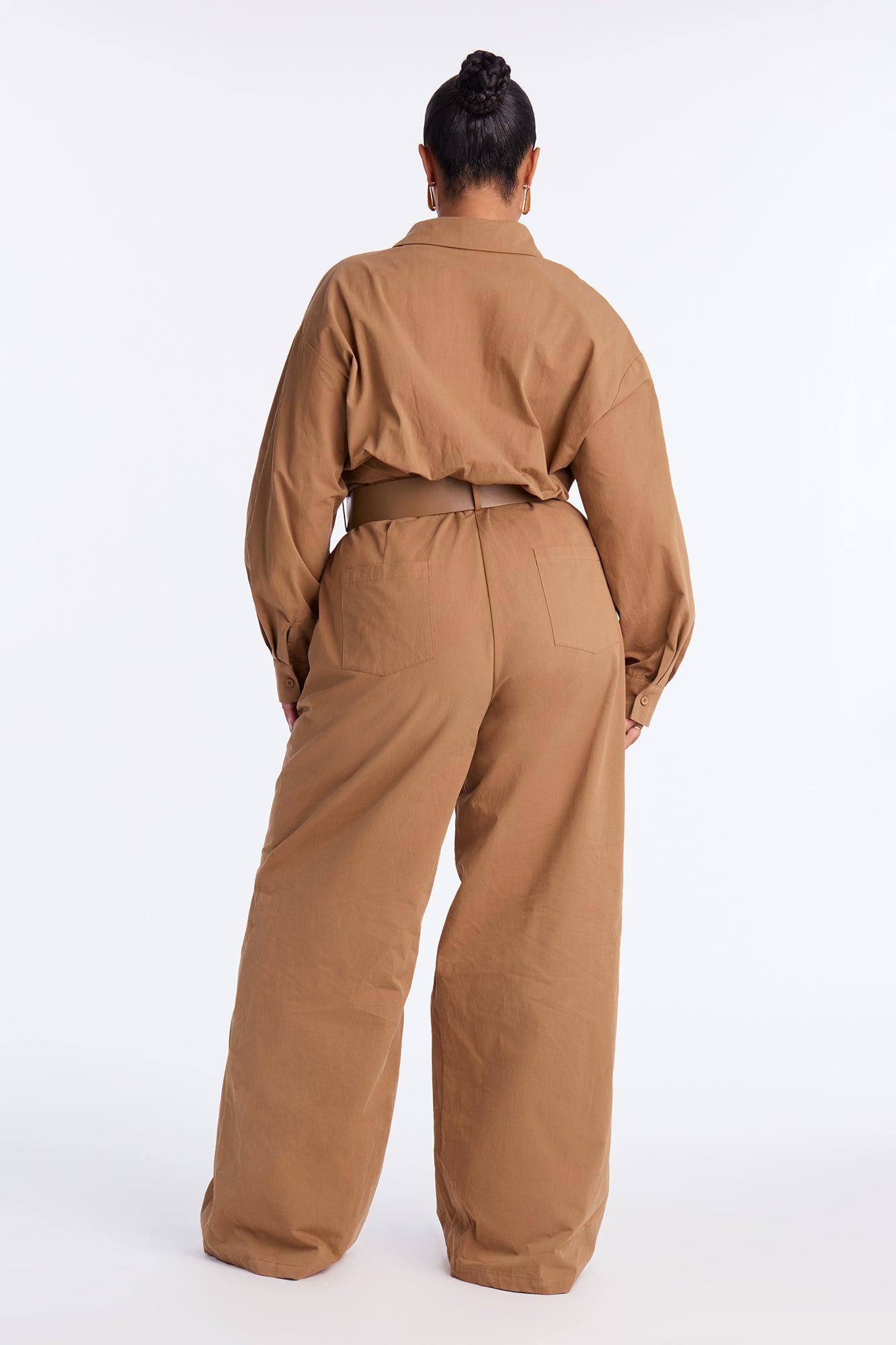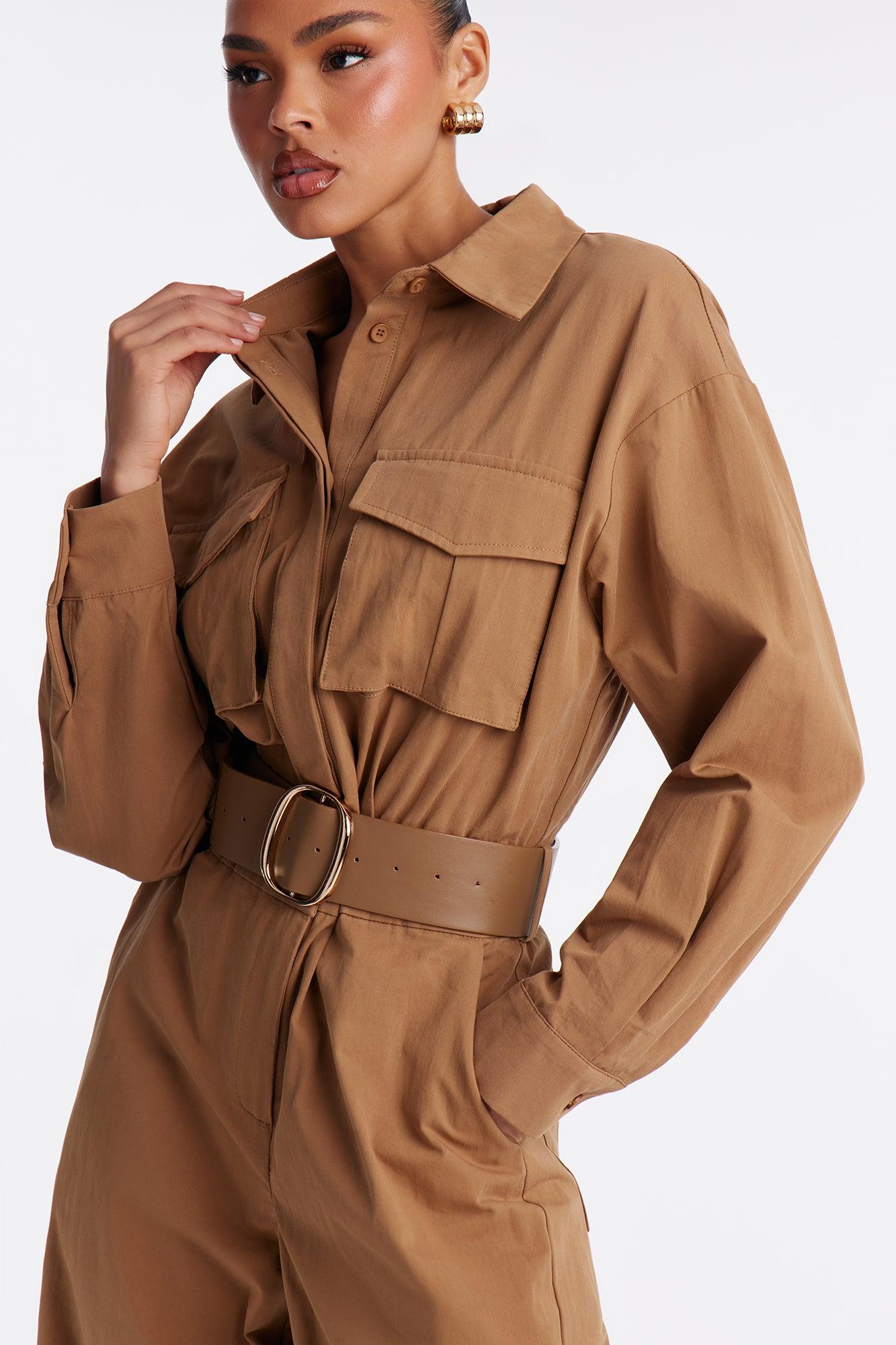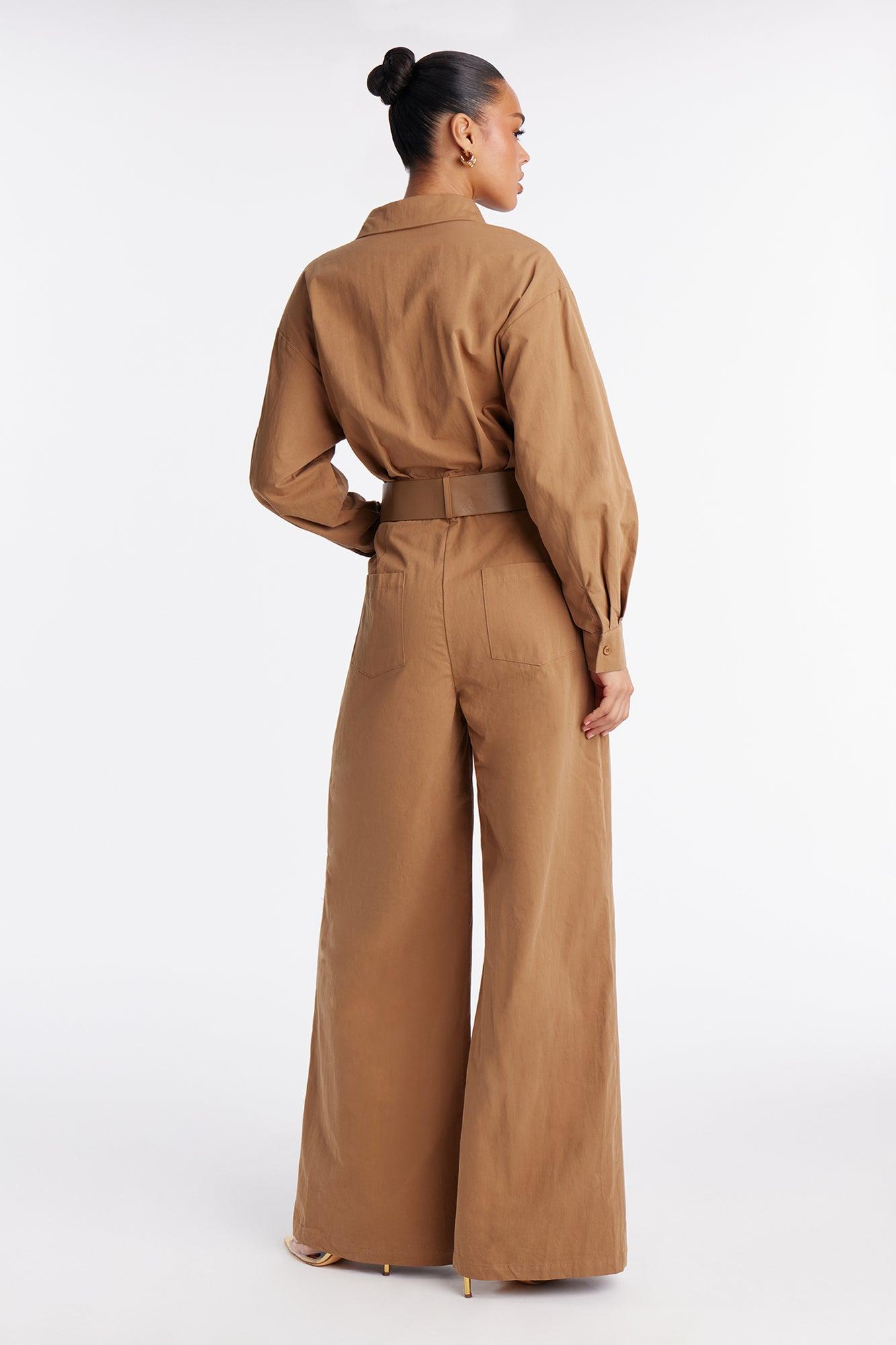 Antionette Belted Wide Leg Jumpsuit - Khaki Female
