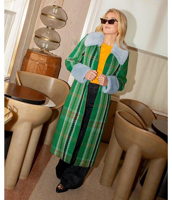 From Antonio Melani x The Nat Note, this coat features: Textured tweed fabrication Trench coat silhouette Long sleeves Peter pan collar Detachable faux fur collar Faux fur cuffs Lined Clear button closure Approx. 44.5" length Polyester Dry clean Imported.