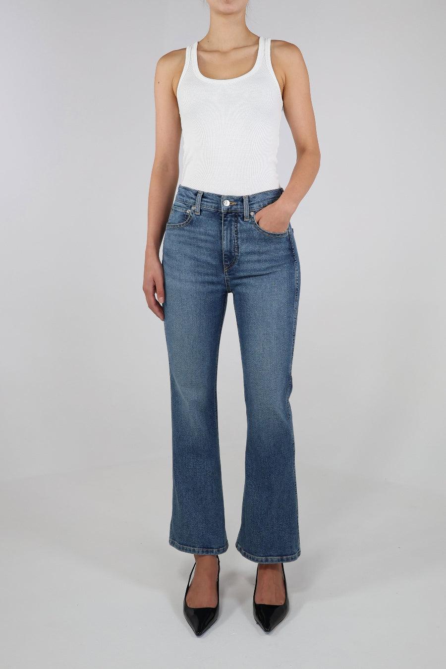 Slimming and chic, Anya fits clean through the hip with a gradual leg opening that finishes past the ankle. A soft comfort stretch denim in a seaonsless wash makes this the perfect 'wear anywhere' jean.