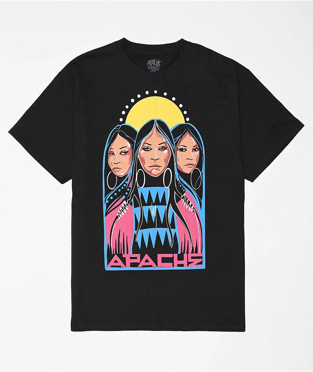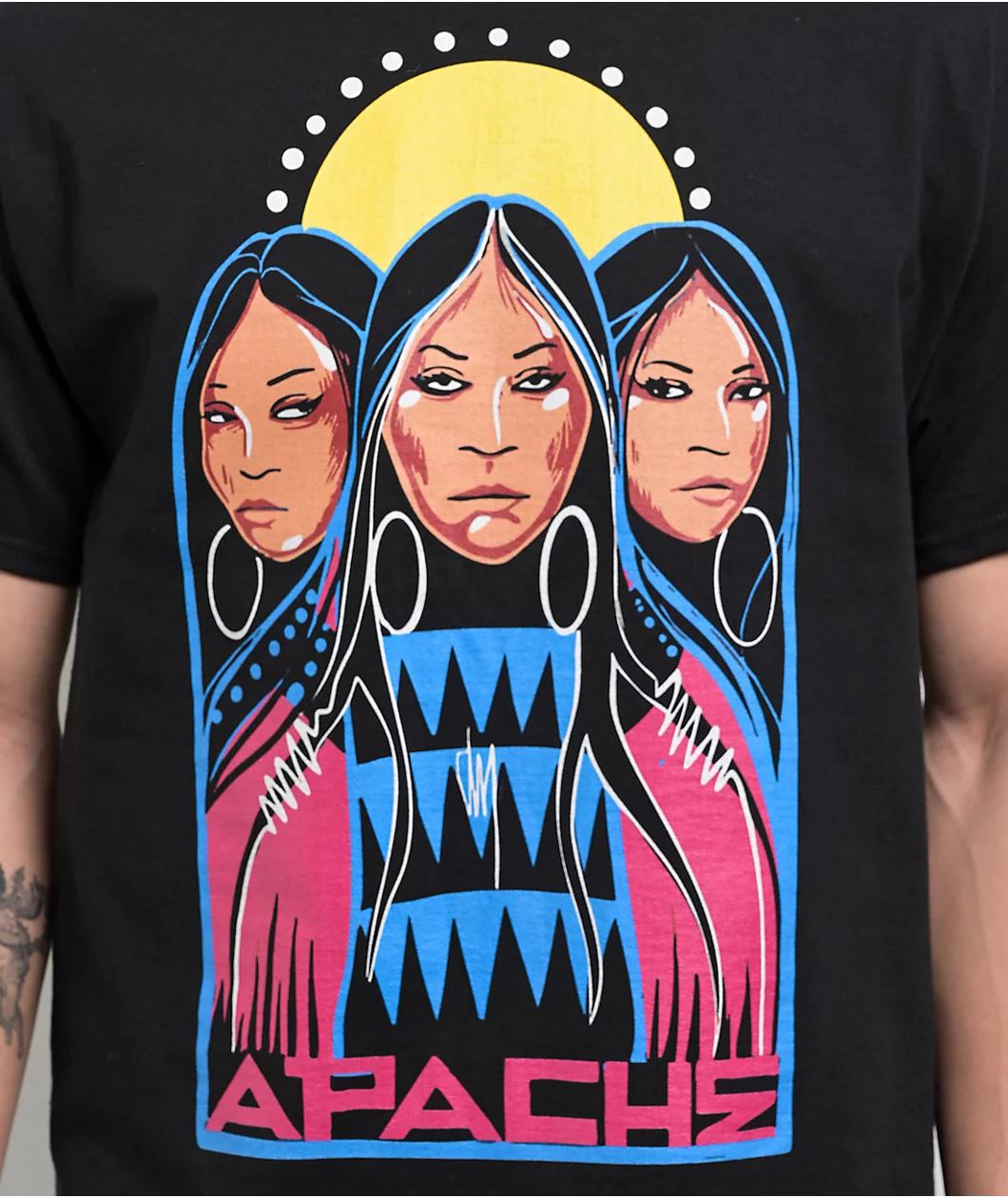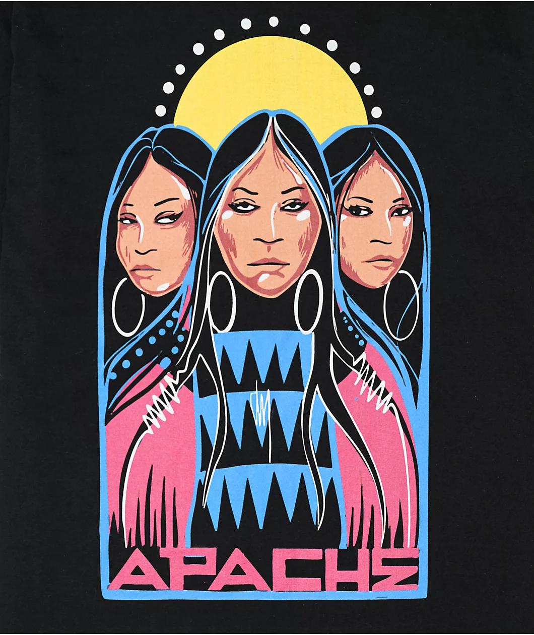 Straight off the reservation, Apache Skateboards delivers the Women t-shirt in a black hue with a printed graphic on the front. Made from 100% cotton, the durable short sleeve showcases a trio of traditional Native American Women above bold, pink bra