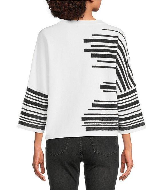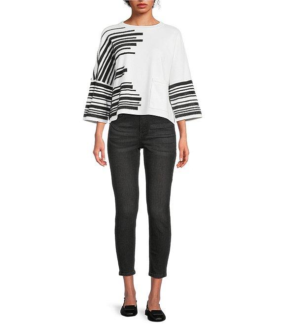 APNY Knit Stripe Crew Neck 3/4 Sleeve Top