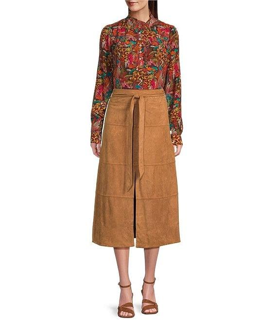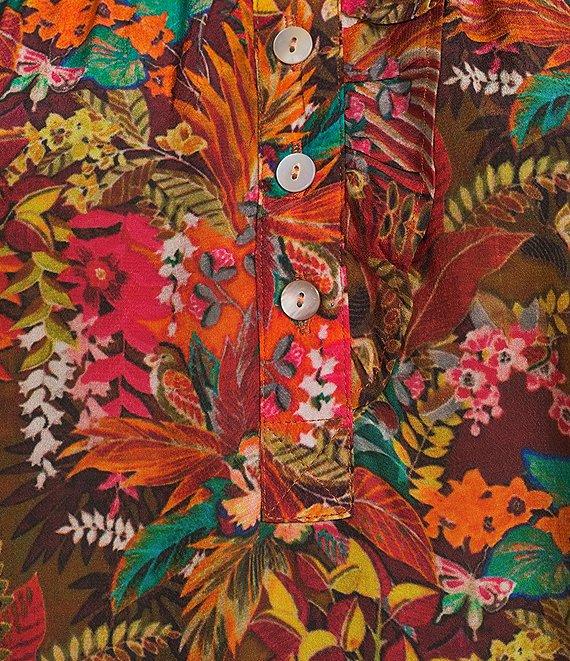 APNY Woven Printed Ruffle Mock Neck Button Down Bouse