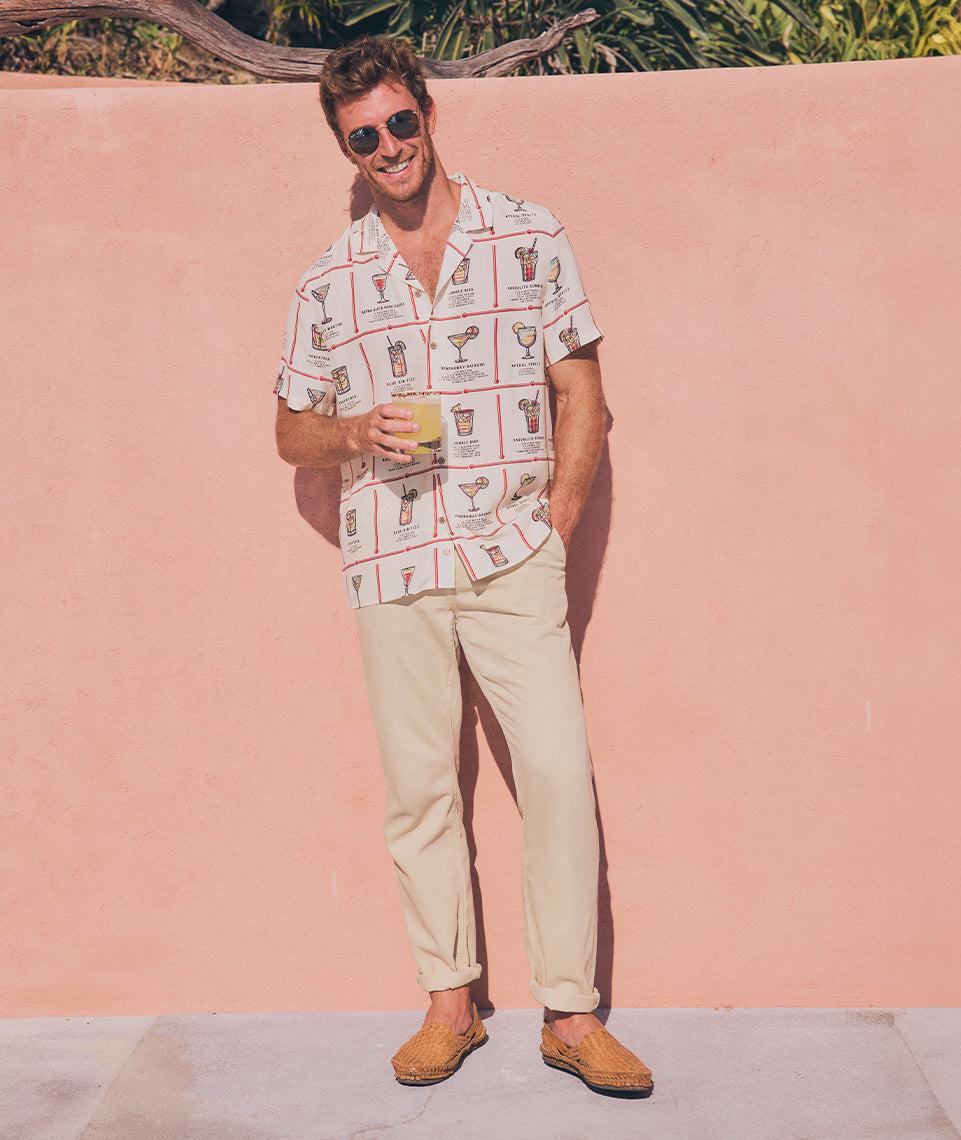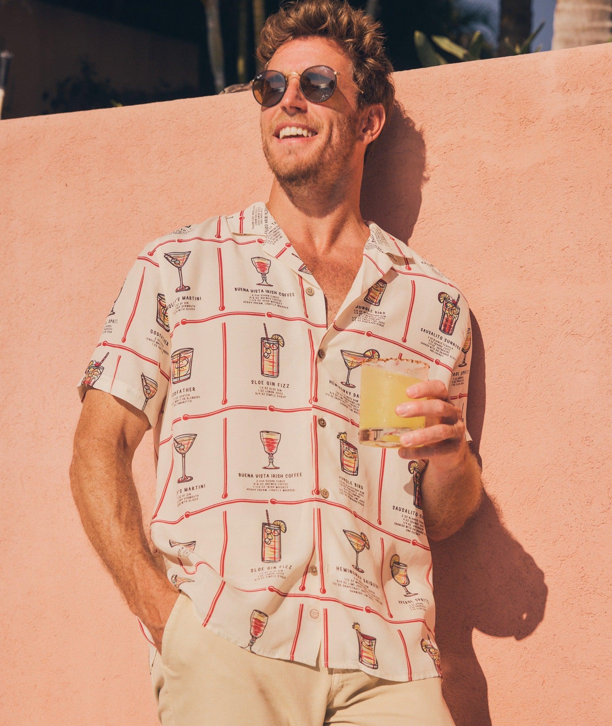 Oh hey, cocktail hour. Based on a silk-like, vintage shirt we found, this new style features ML HQ's favorite drinks, as well as some cocktails native to the Bay Area (AKA: our backyard). It's lightweight, soft, and has the perfect amount of drape.