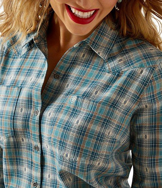 Ariat Billie Jean Poplin Plaid Point Collar Long Sleeve Button Front Shirt