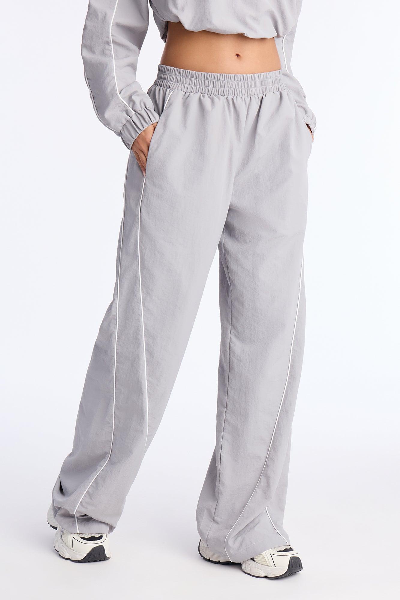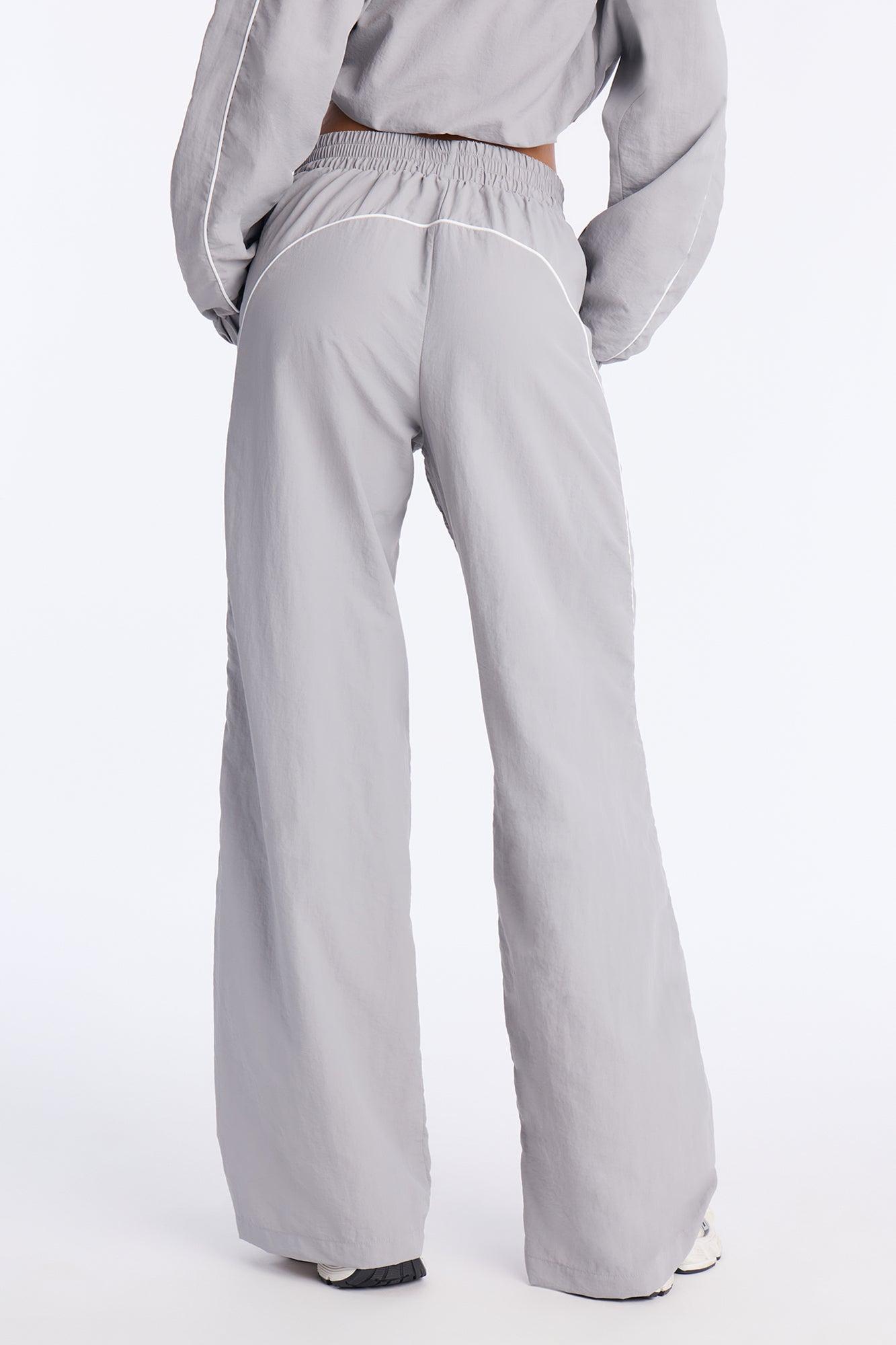 Available In Grey/combo And Red/combo. Windbreaker Pants Elastic Waistband High Rise 33" Inseam Contrast Piping Wide Leg 100% Nylon Pair With "Around The Track Half Zip Windbreaker Jacket" Imported California Proposition 65WARNING: Cancer and Reproductive Harm - www.P65Warnings.ca.gov.