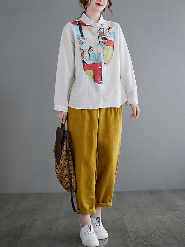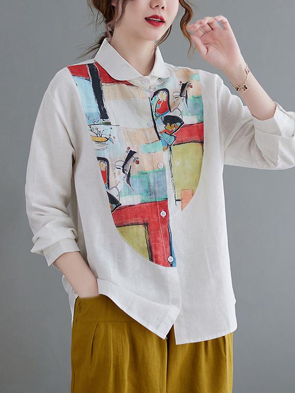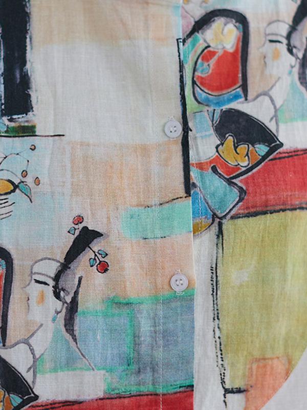 Artistic Retro Contrast Color Cropped Blouse