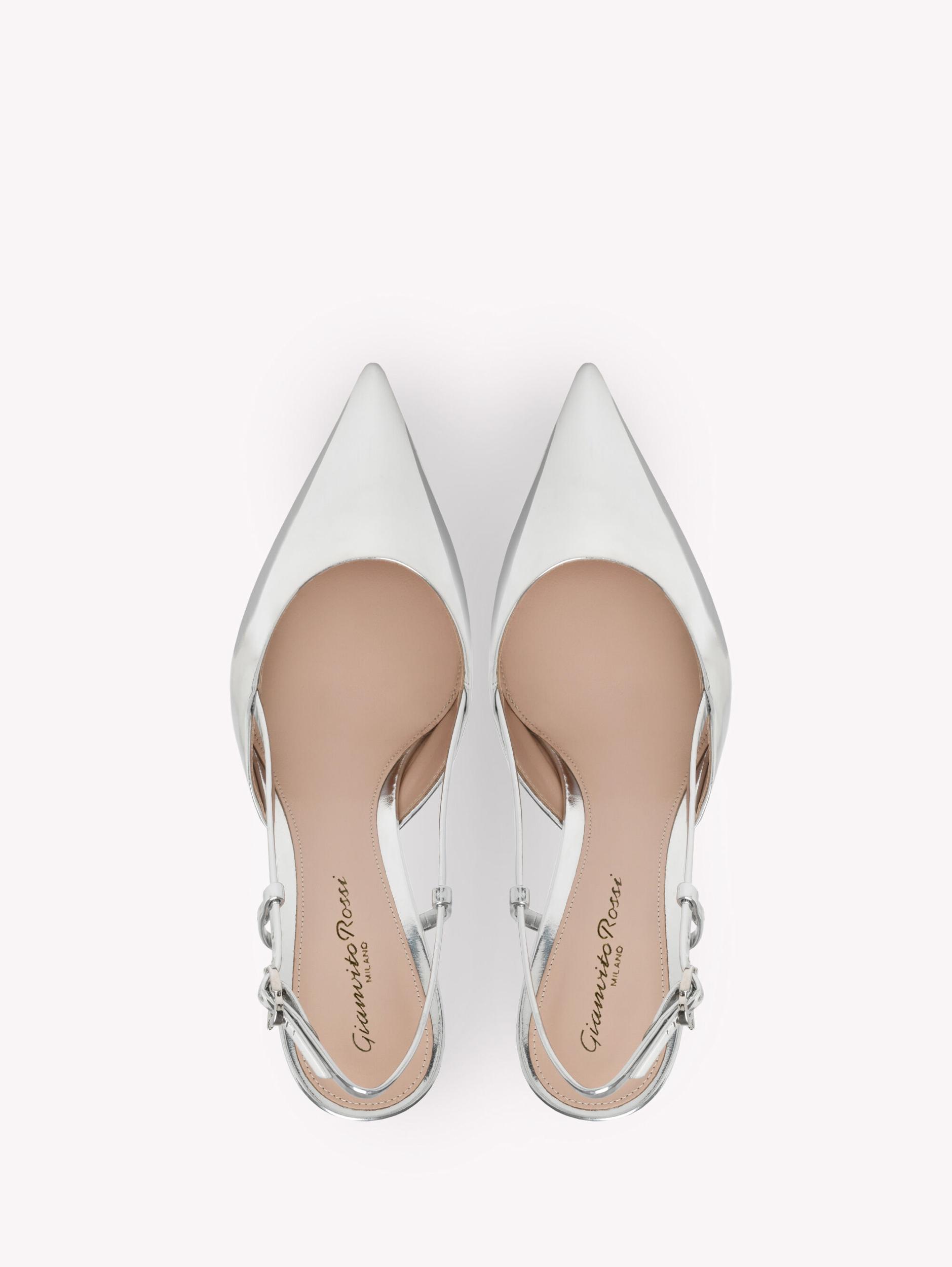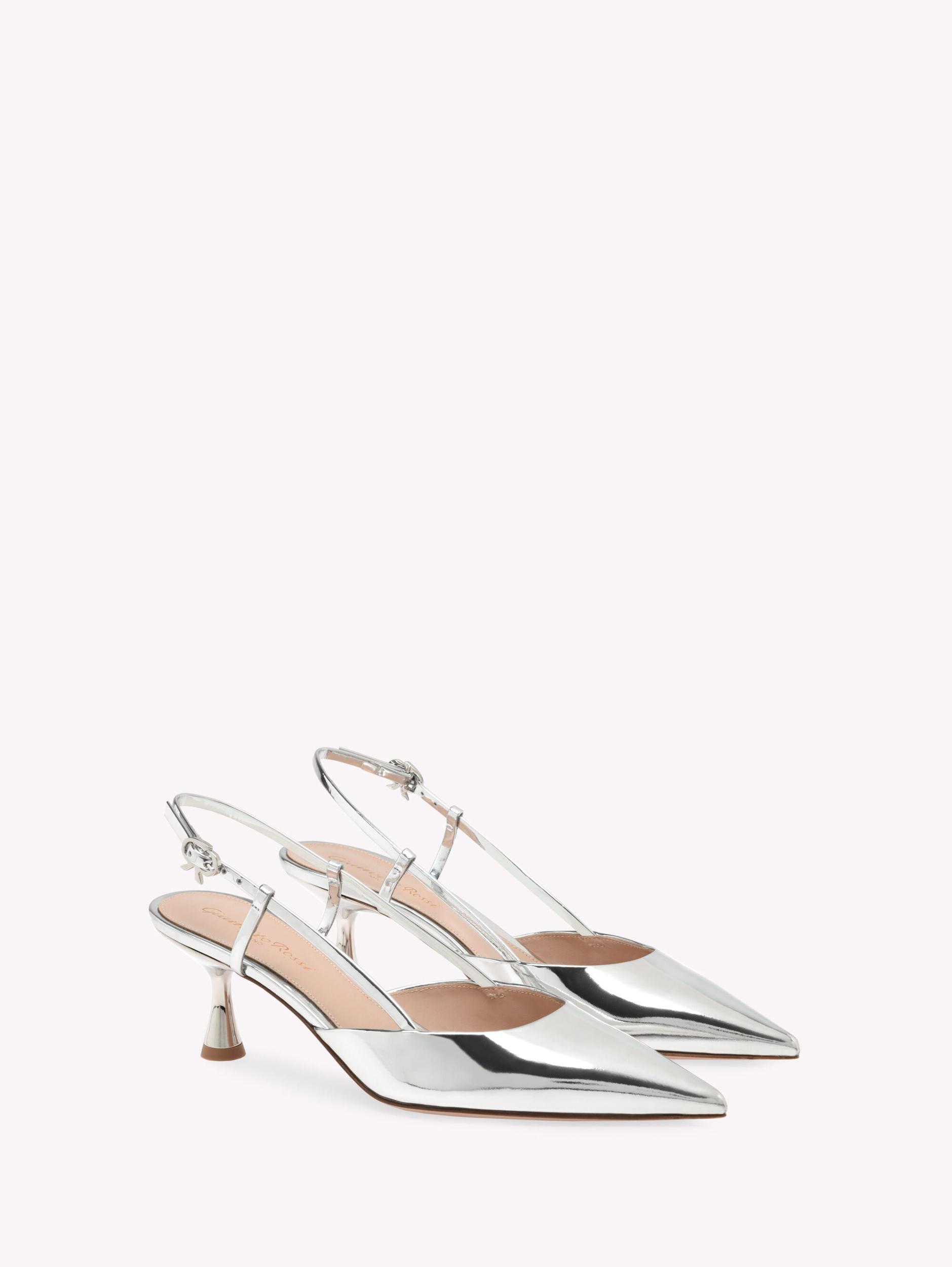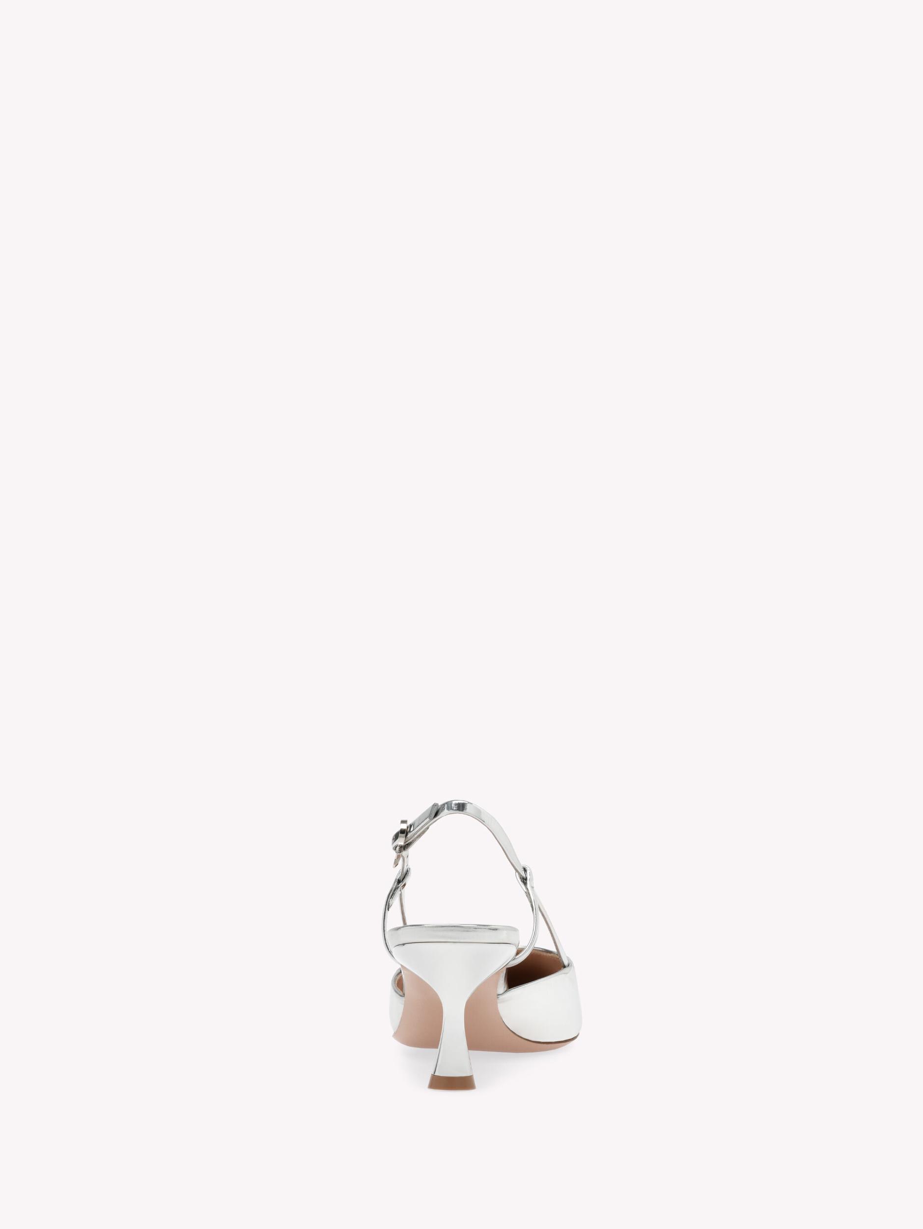 Set on a 55mm flare kitten heel, Ascent 55 is a pointed-toe slingback. The iconic Ribbon buckle in gold metal, signature of the brand, elegantly enriches the ankle strap. Handmade in Italy.